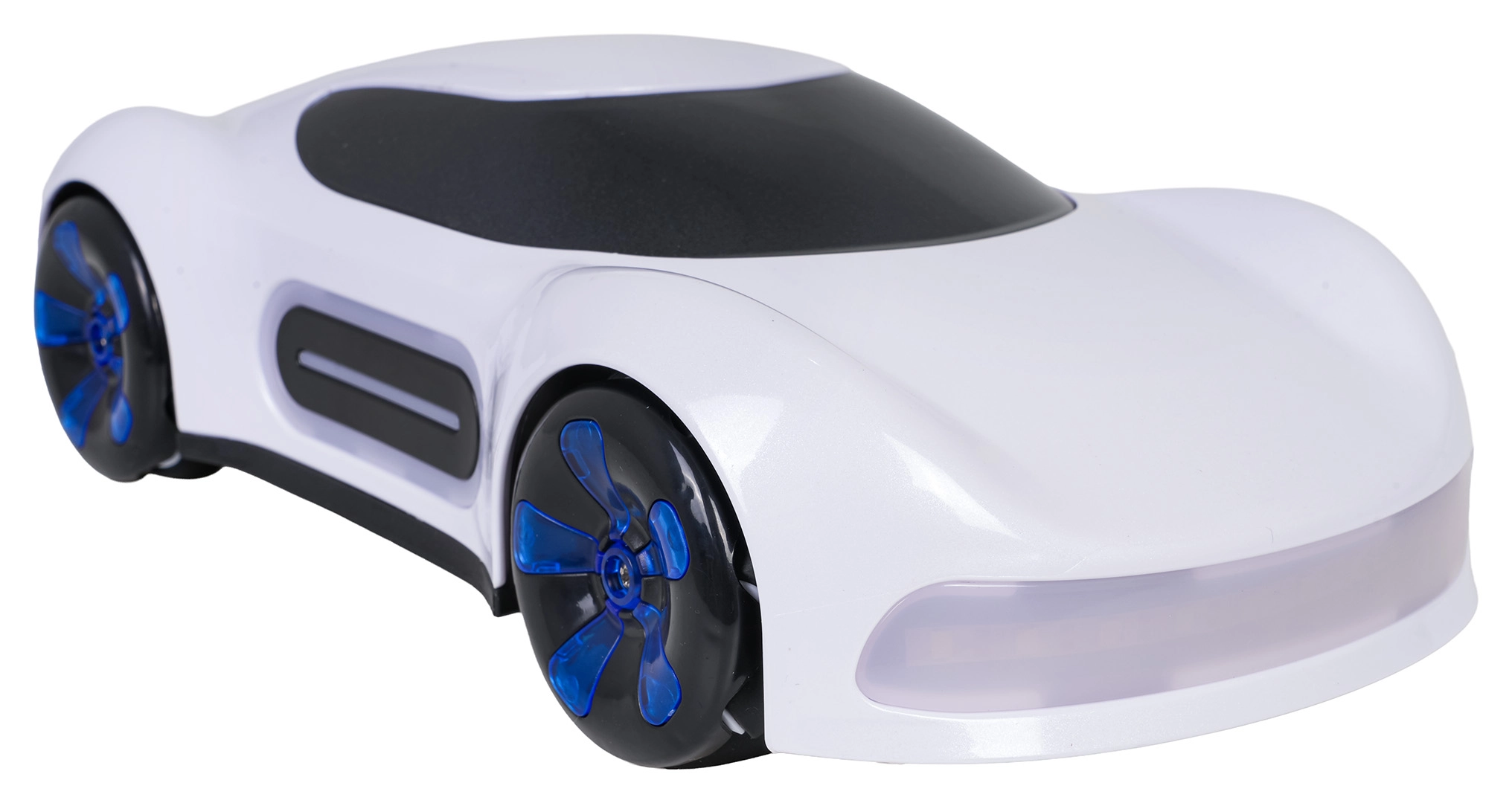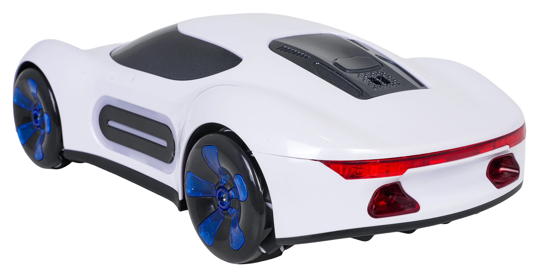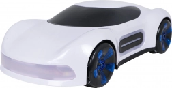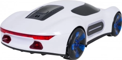 Futurystyczne auto RC dla dzieci od 3 lat z efektem dymu po uzupełnieniu zbiorniczka na wodę, oświetleniem LED kół i karoserii oraz sterowaniem 2,4 GHz zarówno klasycznym pilotem, jak i gestami na zegarku-naramiennym. Potrafi driftować, jeździć we wszystkich kierunkach i obracać się o 360°.