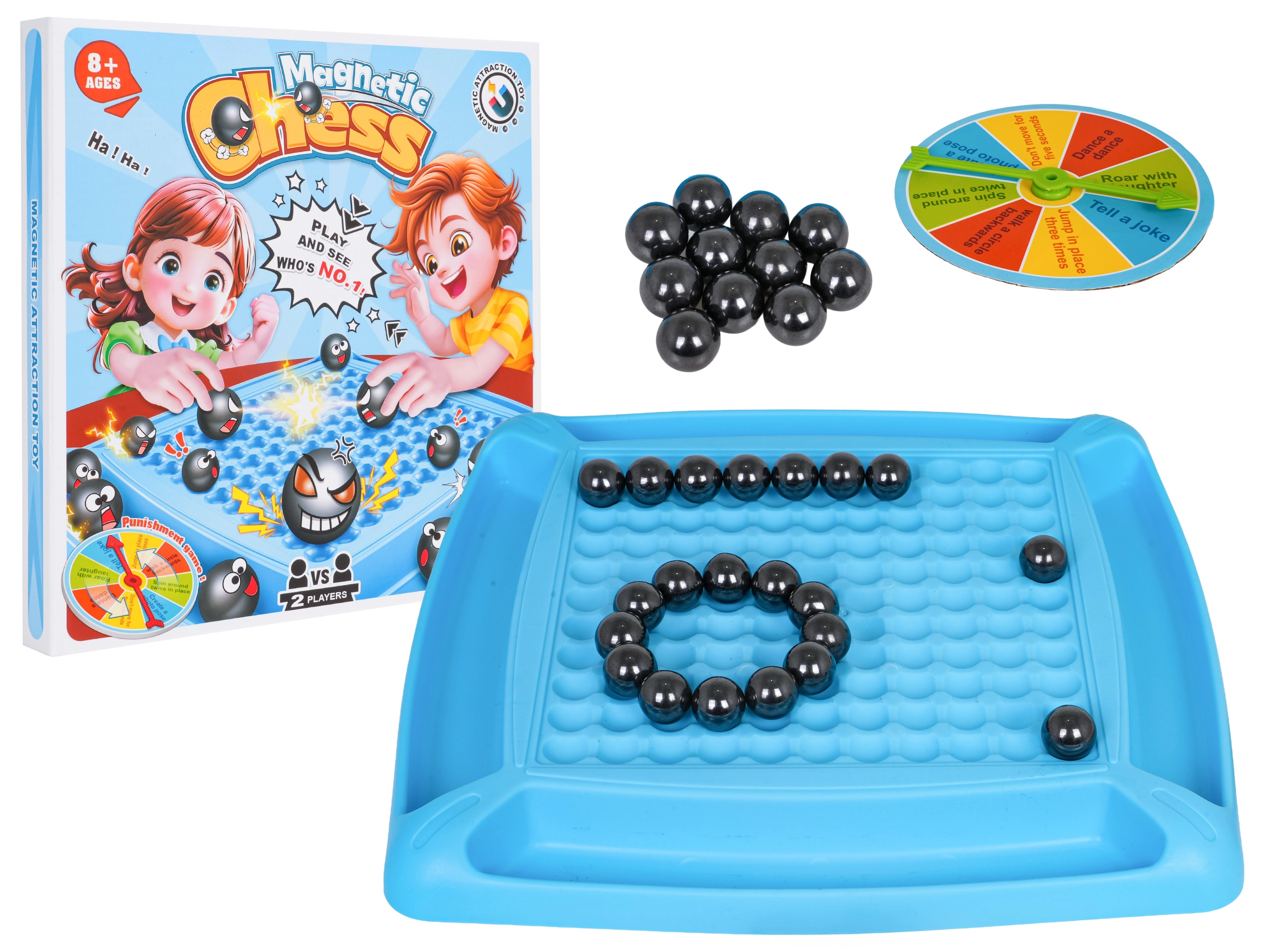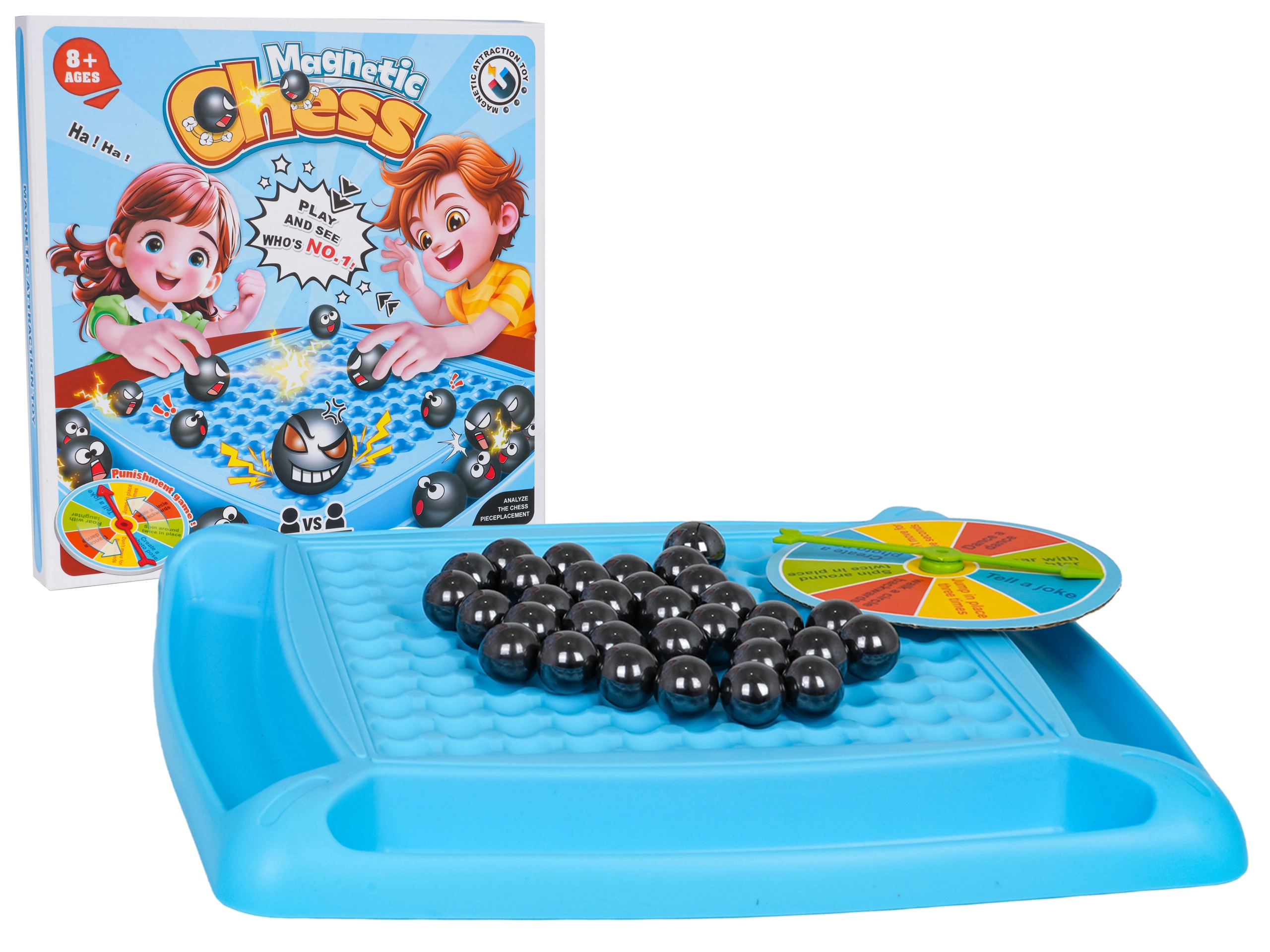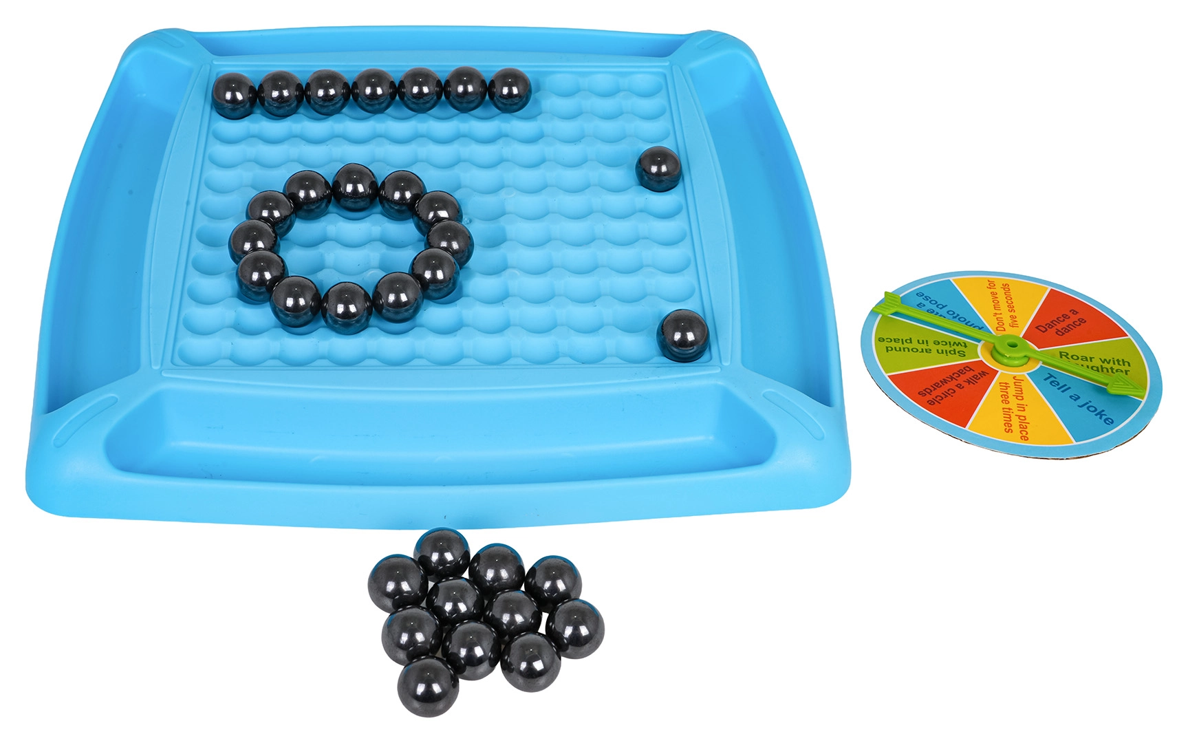 Zabawna magnetyczna gra stołowa dla dwóch graczy od 8 lat rozwija zręczność, uważność i kreatywne myślenie. Zestaw zawiera 32 magnetyczne kulki, koło wyzwań oraz planszę z trzema wariantami rozgrywki, które zapewnią emocjonującą i wielokrotnie atrakcyjną zabawę.