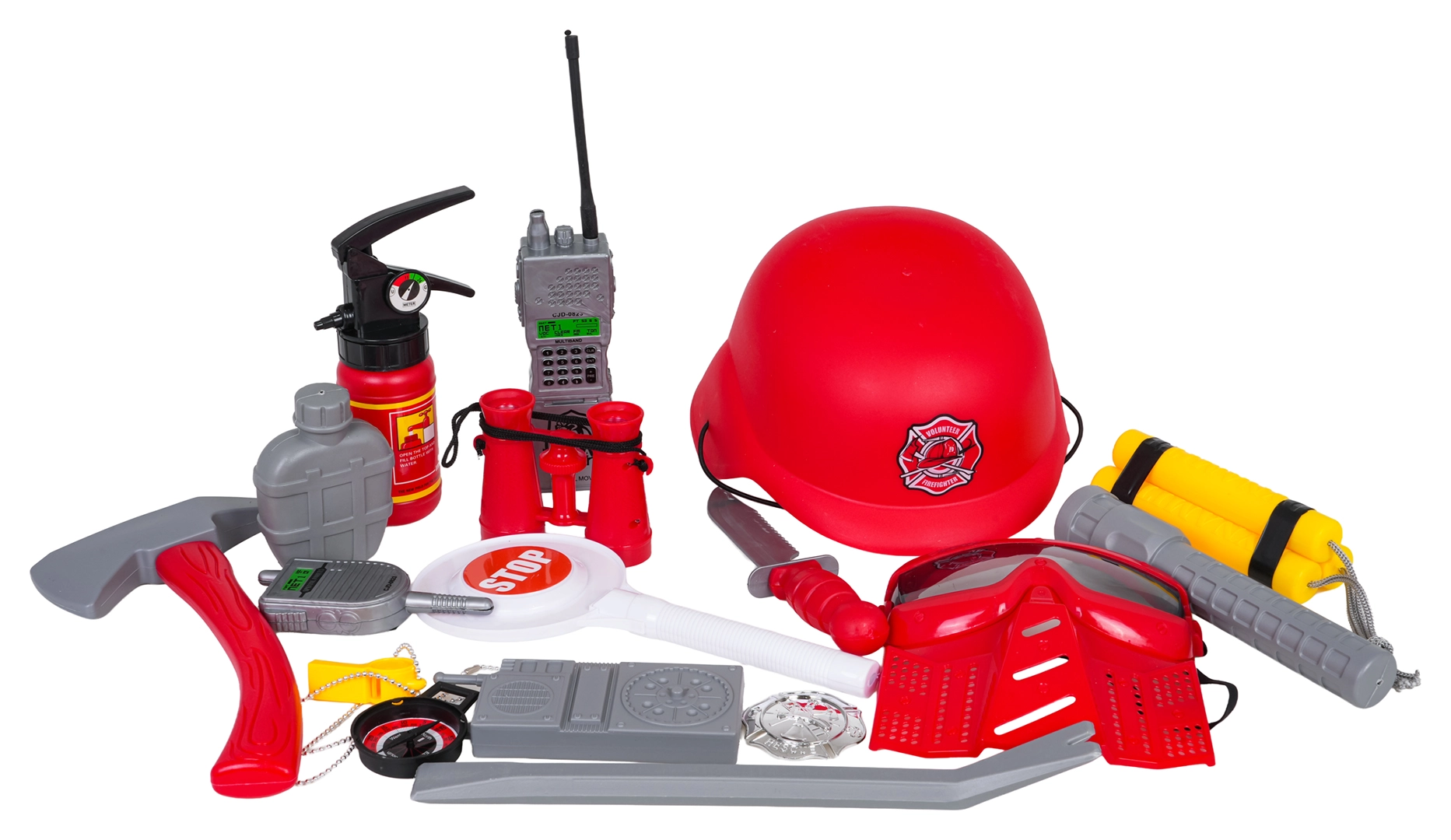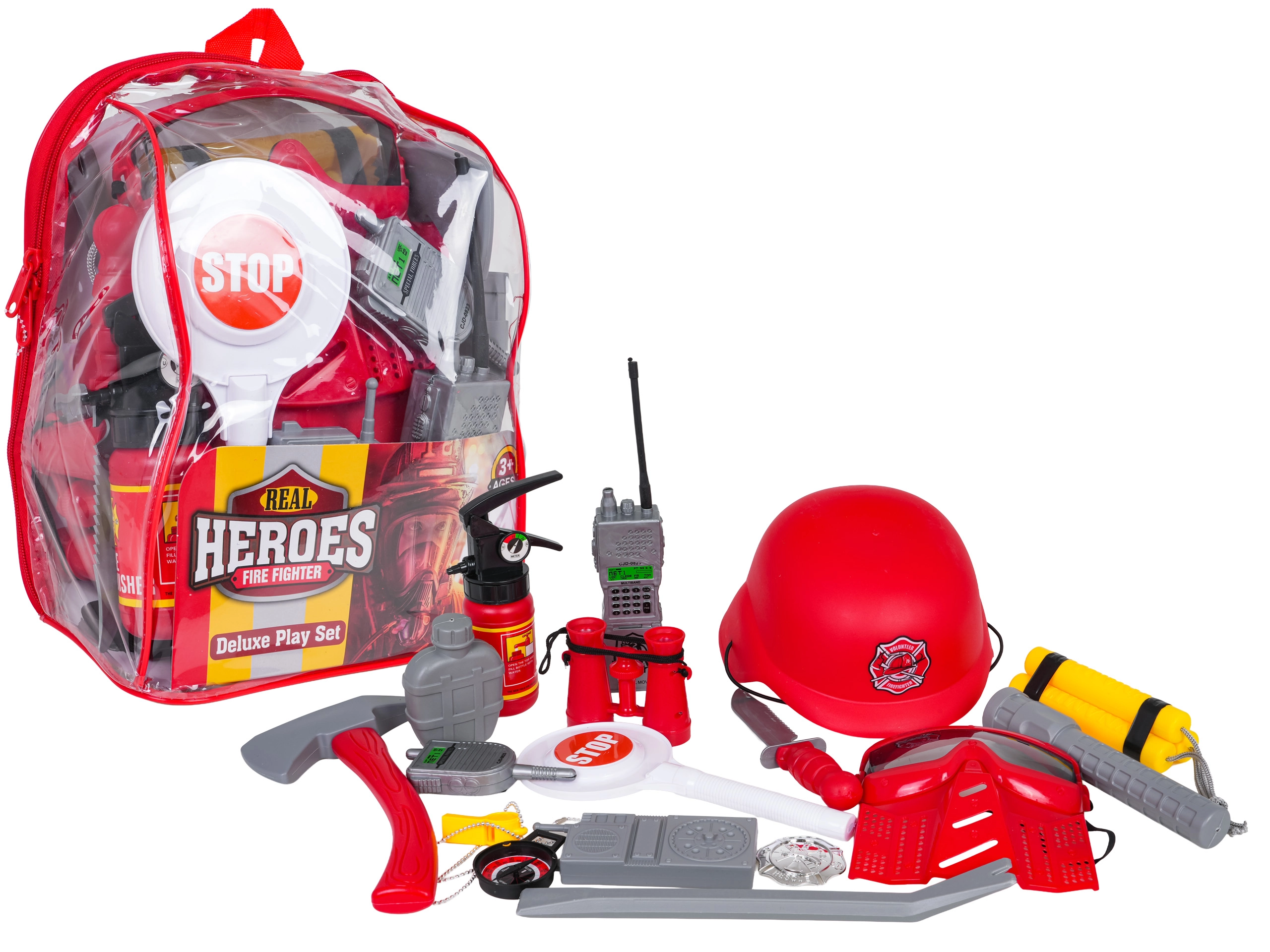 - 18 elementów do realistycznej zabawy i treningu roli strażaka