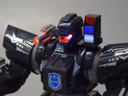 Masivne nogi i szerokie stopy zapewniają stabilny chód, detale POLICE, odznaki i ramienna listwa świetlna. Ruchome ramiona pozwalają ustawiać dynamiczne pozy.