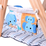 - Naturalne materiały: stabilna drewniana konstrukcja A, miękkie tkaniny przyjemne w dotyku.