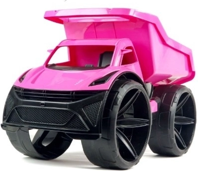 Różowa wywrotka MAXIMUS łączy atrakcyjny wygląd z przemyślaną funkcjonalnością. Dzięki wytrzymałemu, a jednocześnie lekkiemu plastykowi jest łatwa w prowadzeniu nawet dla młodszych dzieci, a ruchoma skrzynia ładunkowa umożliwia realistyczny załadunek i rozładunek. Futurystyczne linie, szeroki zderzak z plastra miodu oraz skośnie osadzone „światła” podkreślają nowoczesny charakter zabawki.