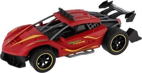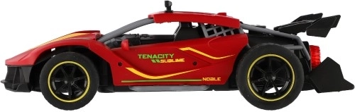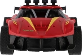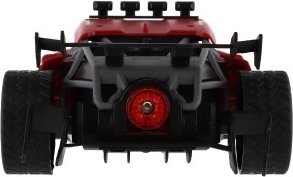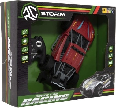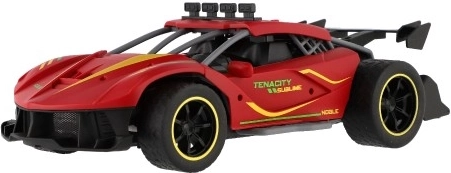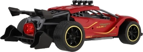 Czerwone sportowe auto RC ucieszy małych i dużych miłośników wyścigów. Dzięki sterowaniu 2,4 GHz oferuje płynne prowadzenie do przodu/tyłu i na boki, miękkie gumowe opony zapewniają świetną przyczepność, a realistyczny efekt chłodzenia wydechu dodaje jeździe atmosfery prawdziwych wyścigów. Nadwozie z trwałego i bezpiecznego dla zdrowia plastiku wytrzyma nawet bardziej wymagające użytkowanie.
