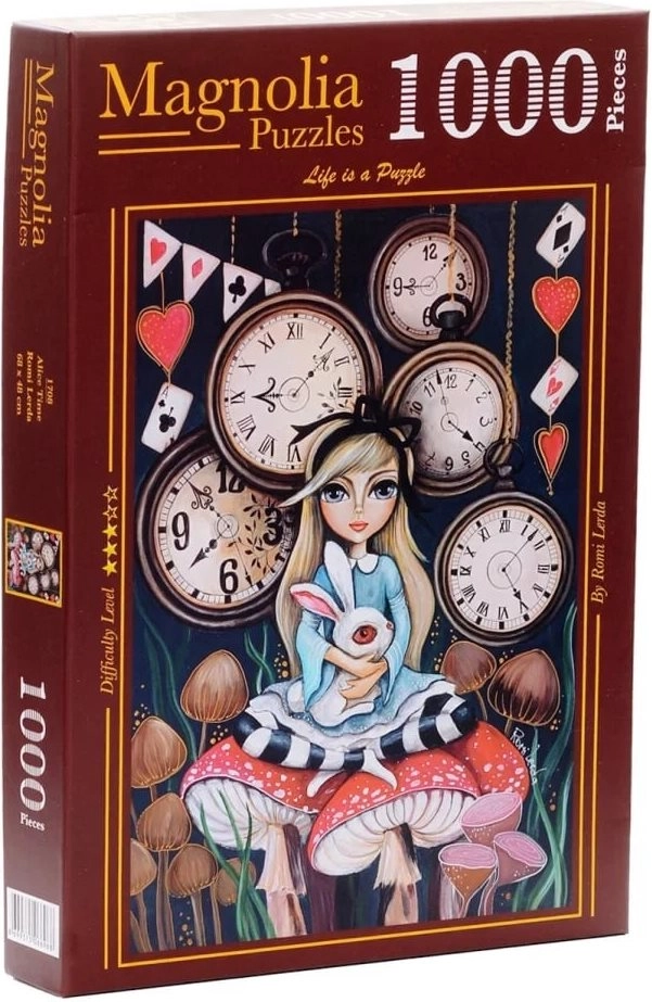 Ciesz się godzinami zabawy z wysokiej jakości puzzlami z 1000 elementów z motywem Alicja i czas. Precyzyjnie wycięte elementy oraz format po ułożeniu 48 × 68 cm gwarantują świetną rozrywkę dla początkujących i zaawansowanych układaczy.