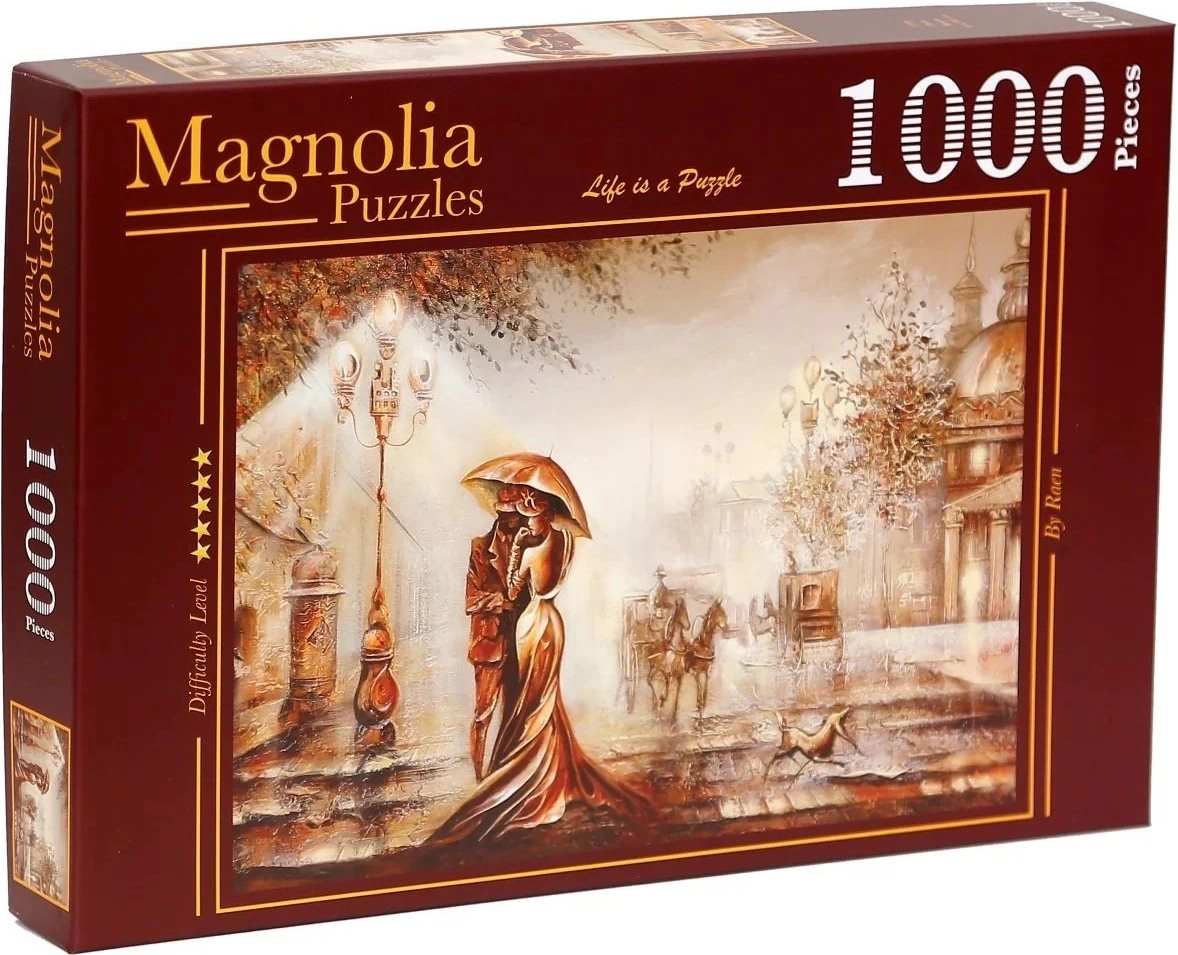 Ciesz się relaksującym układaniem puzzli z zestawem 1000 elementów z motywem Magnolia Spotkanie. Wysokiej jakości druk, precyzyjnie wycięte elementy oraz wymiary po ułożeniu ok. 68 × 48 cm gwarantują świetną zabawę zarówno dla początkujących, jak i zaawansowanych miłośników puzzli.