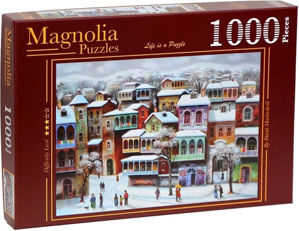 Zrelaksuj się przy wysokiej jakości puzzlach z 1000 elementów z motywem ośnieżonego, historycznego Tbilisi. Idealne dla miłośników miejskich pejzaży i spokojnych wieczorów. Wysoka jakość druku, precyzyjne wycięcia oraz wymiary po ułożeniu 68 × 48 cm gwarantują świetną zabawę przy układaniu.