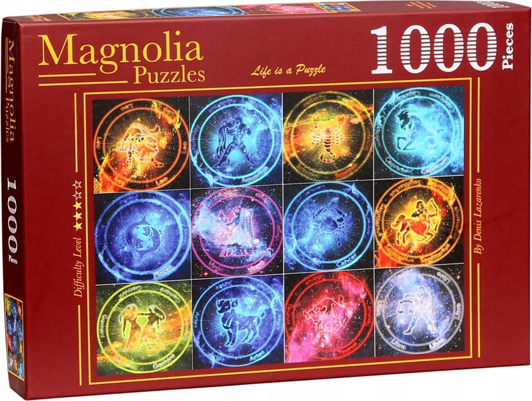 Zanurz się w świecie astrologii i układania puzzli, które ucieszą zarówno początkujących, jak i doświadczonych miłośników. Motyw dwunastu znaków zodiaku jest detaliczny i wizualnie atrakcyjny, więc z przyjemnością będziesz patrzeć na gotowe dzieło. Dzięki wysokiej jakości nadrukowi i solidnej tekturze czekają Cię godziny przyjemnej zabawy.