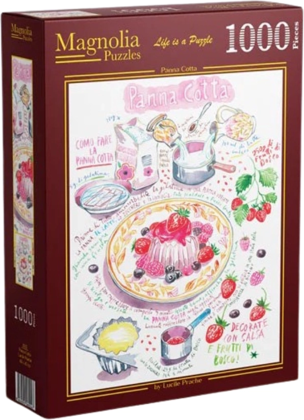 Odkryj radość układania z puzzlami MAGNOLIA liczącymi 1000 elementów, które łączą solidne wykonanie i elegancki motyw panna cotta. Dzięki precyzyjnemu wykrojowi elementy świetnie do siebie pasują, a gotowy obraz zachwyca kolorami i detalami.