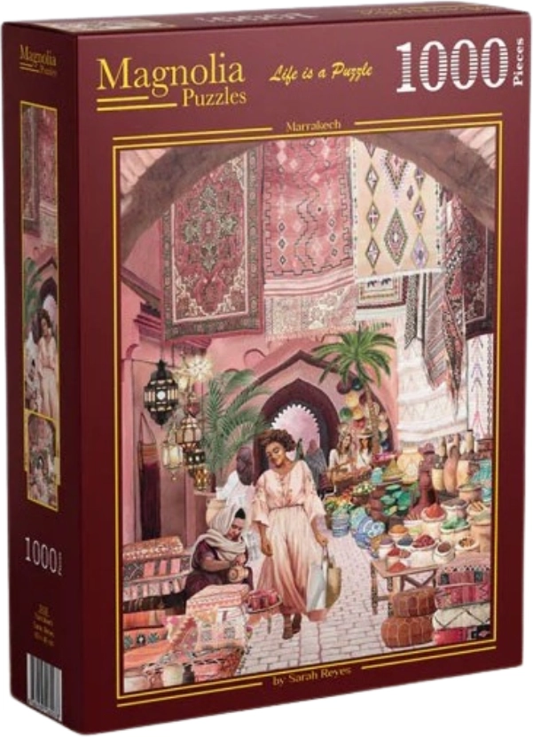 Ciesz się godzinami zabawy i skupionego odpoczynku ze stylowym puzzle z motywem Marrakeszu. Wysoka jakość wykonania i precyzyjne wycięcia zapewniają płynne układanie, dzięki czemu uwidacznia się szczegółowa i kolorowa kompozycja.