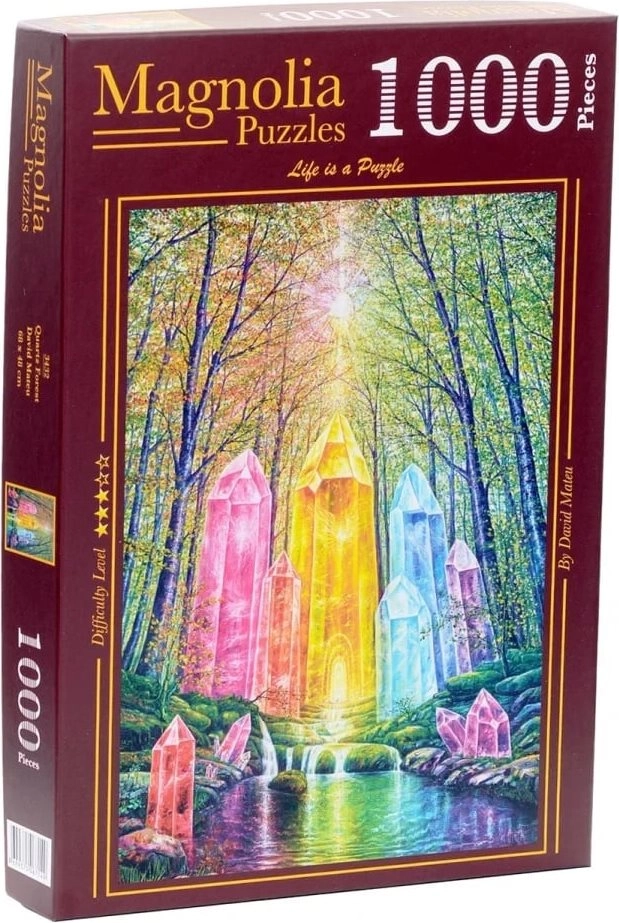 Zanurz się w pięknej ilustracji tajemniczego krystalowego lasu i ciesz się godzinami zabawy oraz odpoczynku. Puzzle z 1000 elementów oferują idealny poziom trudności dla dorosłych i starszych dzieci. Dzięki wysokiej jakości drukowi i solidnej tekturze poszczególne elementy doskonale do siebie pasują, tworząc ostry, wierny kolorystycznie obraz.