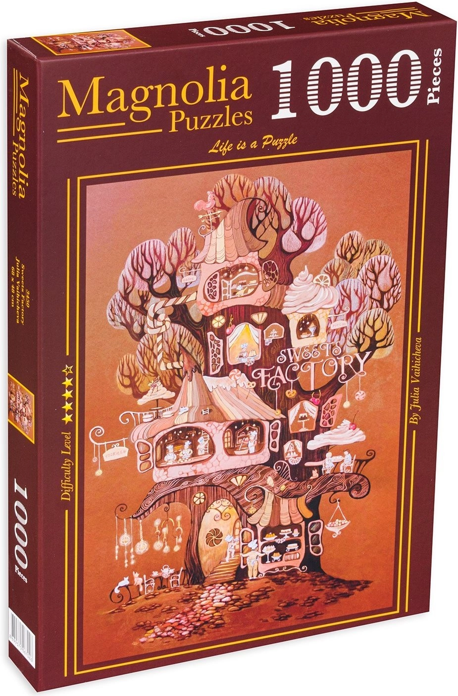 Odkryj urok świata słodkości dzięki tym efektownym puzzlom, które zachwycą zarówno początkujących, jak i doświadczonych miłośników układanek. Motyw pełen detali i żywych kolorów sprzyja koncentracji i relaksowi. Po ułożeniu powstanie atrakcyjny obraz o wymiarach ok. 48 × 68 cm.