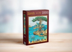Ciesz się relaksującym układaniem tego wysokiej jakości puzzli z 1000 elementów z motywem figlarnych kotów na drzewie. Idealne dla miłośników zwierząt i spokojnych wieczorów. Wymiary po ułożeniu to ok. 48 × 68 cm.
