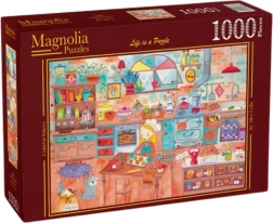 Zrelaksuj się z wysokiej jakości puzzlami, które prezentują radosną ilustrację kolorowej piekarni. Dzięki 1000 elementom i wymiarom po ułożeniu ok. 68 × 48 cm to idealny wybór na spokojne wieczory i wspólne układanie. Świetna opcja dla miłośników detalicznych obrazów, którzy docenią precyzyjne wycięcia i zabawną tematykę.