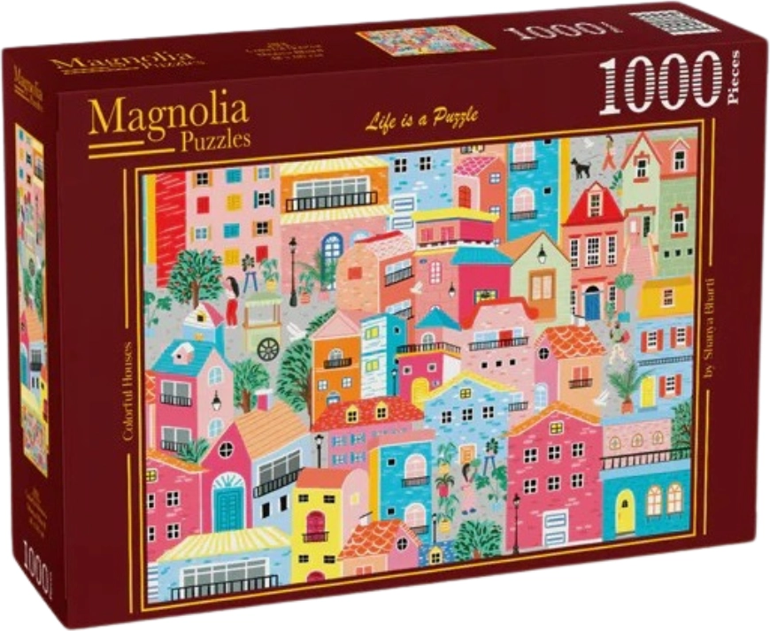 Zrelaksuj się z wysokiej jakości puzzlami z 1000 elementów z motywem kolorowych domów. Idealne dla miłośników układanek, którzy szukają wyzwania, soczystych barw i przyjemnej relaksacyjnej rozrywki w salonie lub na weekend.