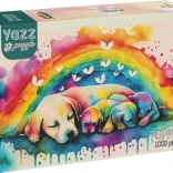 Zrelaksuj się z wysokiej jakości puzzlami YAZZ ze słodkimi motywami szczeniaków. Zestaw zawiera 1000 elementów, a po ułożeniu tworzy obraz o wymiarach 68 × 48 cm – idealny dla miłośników psów i entuzjastów puzzli.