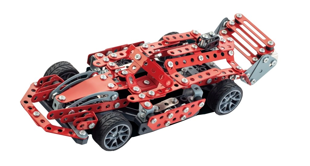 Zbuduj własny samochód wyścigowy z metalu! Ta metalowa konstrukcyjna formuła z 287 elementami łączy wytrzymałe metalowe części oraz plastikowe dodatki, które łączy się za pomocą śrubek i nakrętek. Oferuje zabawne, a zarazem wymagające budowanie, rozwija cierpliwość, zręczność i myślenie techniczne – idealny wybór dla małych i dużych konstruktorów.