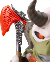 Przezroczysty czerwony podwójny topór z kostną rękojeścią dodaje figurce dynamiki i wierności pierwowzorowi z gry.