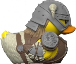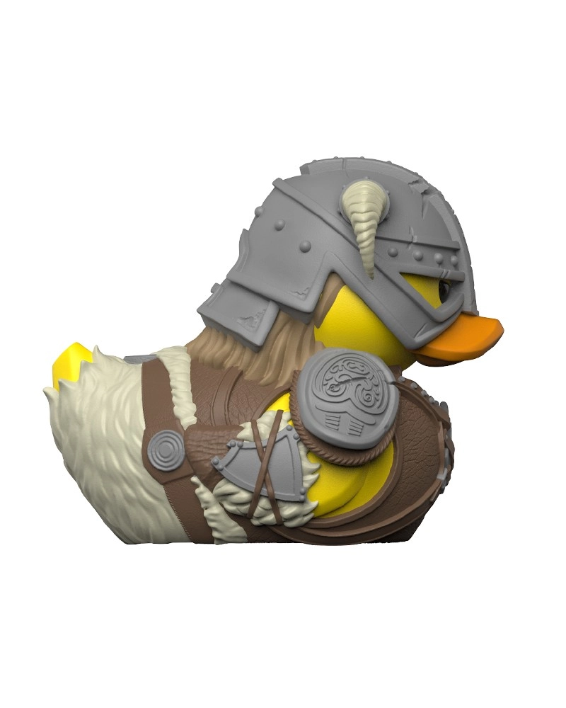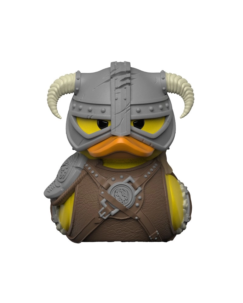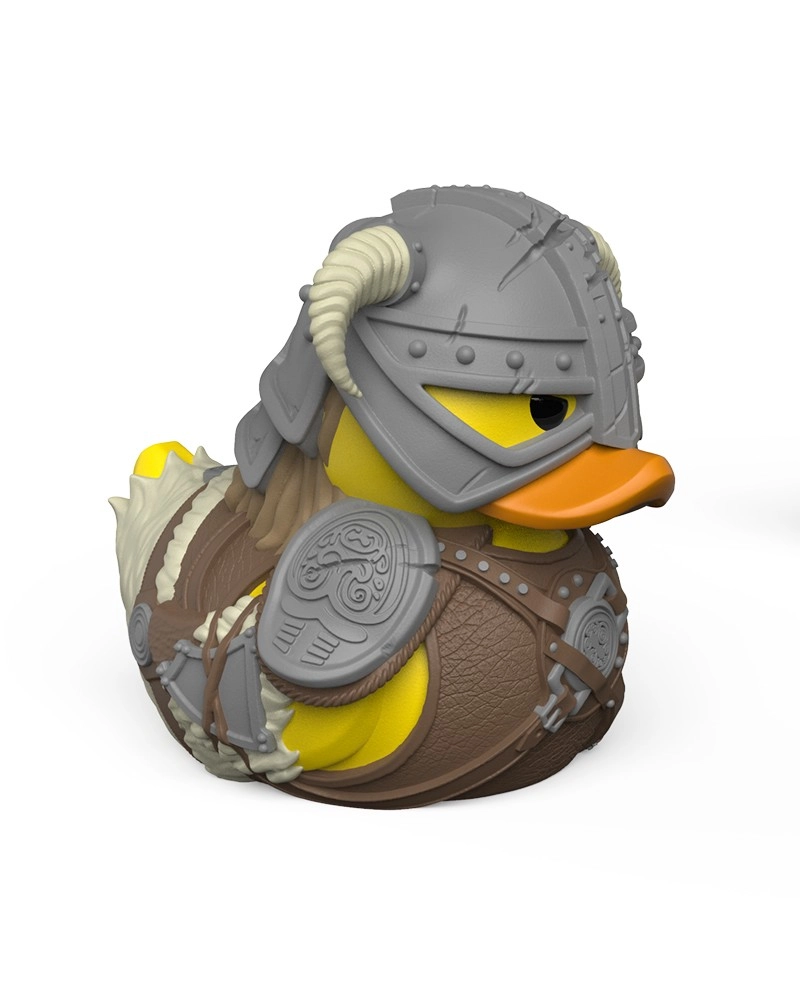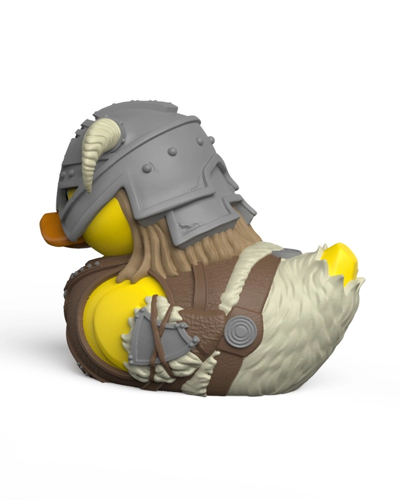 Detalicystyczny hełm z rogami, zbroja i akcesoria przeniesione do postaci kolekcjonerskiej kaczuszki. Idealny prezent dla fanów SKYRIM.