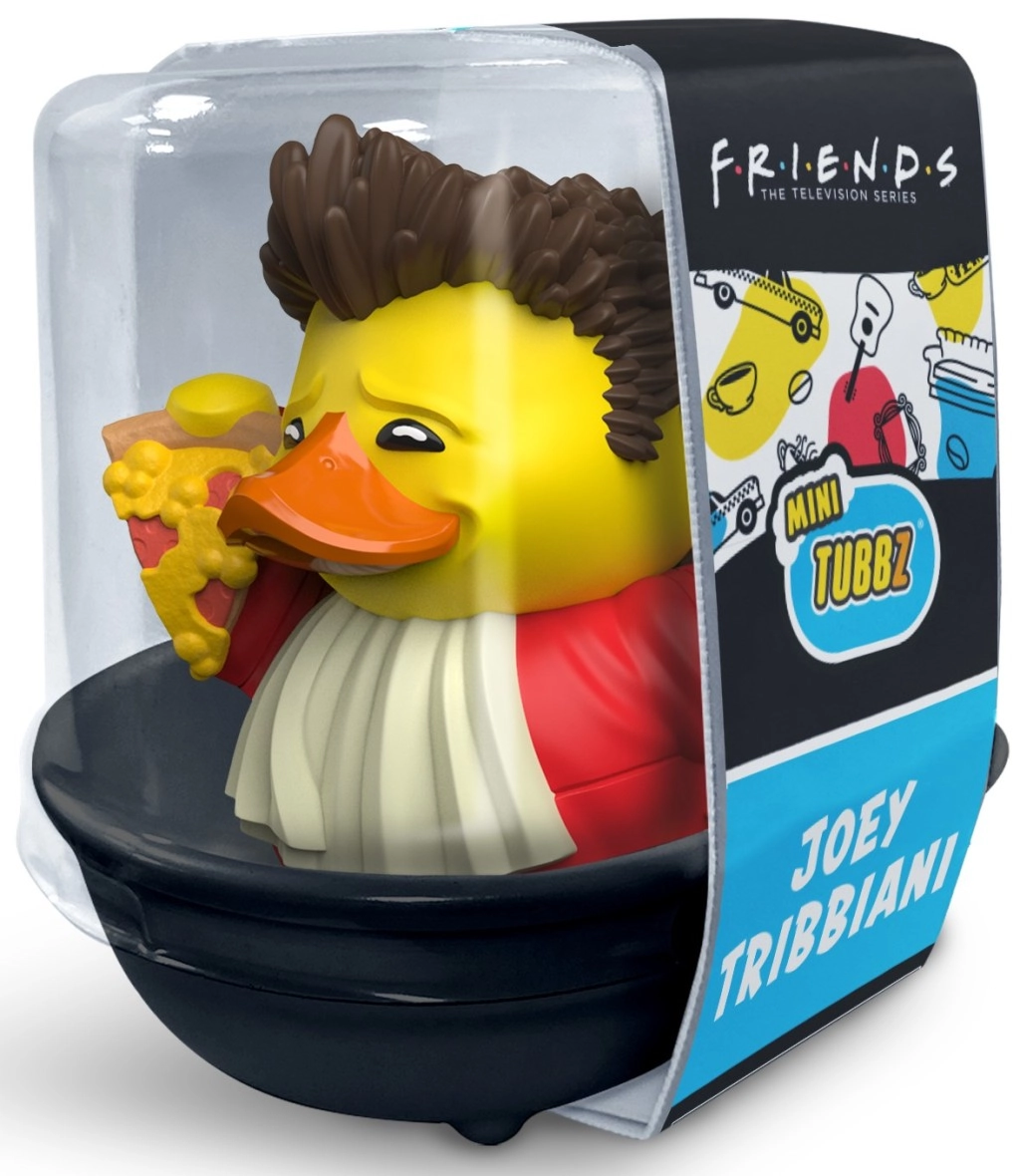 Mini kaczuszka TUBBZ z kultowej serii Przyjaciele przedstawia Joeya Tribbianiego w uroczym, dopracowanym kaczym wydaniu. Dzięki kompaktowej wysokości 5,5 cm jest idealna do mniejszych witryn, na biurko lub jako drobny upominek dla miłośników serialu.