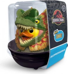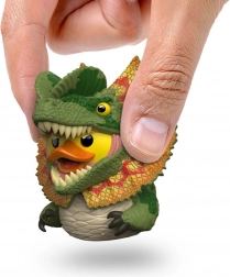 Ta oficjalnie licencjonowana kolekcjonerska kaczuszka TUBBZ przedstawia ikonicznego drapieżnika z Parku Jurajskiego w uroczej, kaczej interpretacji. Realistyczne detale łusek, kolorowego kołnierza i zębów dopełnia wyraziste połączenie zieleni, pomarańczu i żółci, dzięki czemu figurka doskonale wyróżnia się w każdej kolekcji.