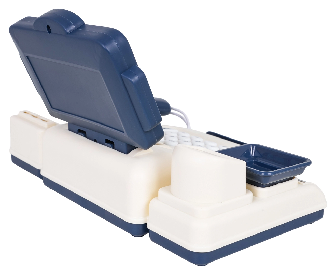 Zabawa w sklep jeszcze nigdy nie była tak wciągająca! Ta dziecięca kasa w niebiesko-kremowym wydaniu oferuje sprawny kalkulator, skaner ze światłem i dźwiękiem, wagę oraz otwierana szufladę na pieniądze. W zestawie znajdziesz także kartę płatniczą i papierowe banknoty, dzięki czemu mali sprzedawcy mogą ćwiczyć liczenie i płatności bezgotówkowe.