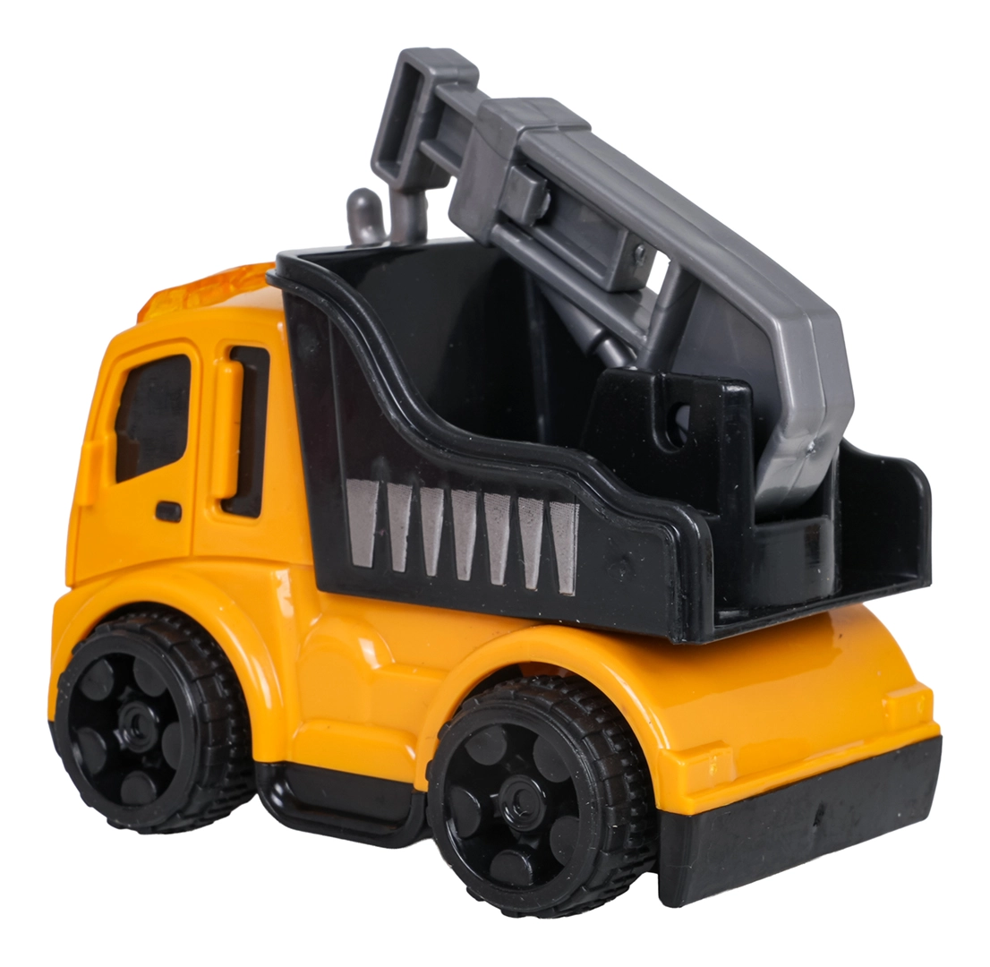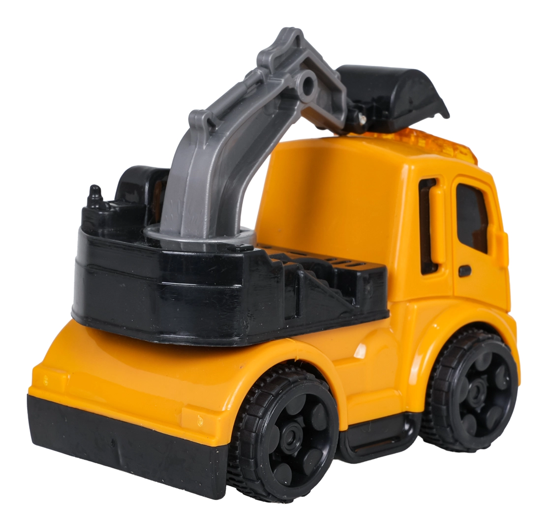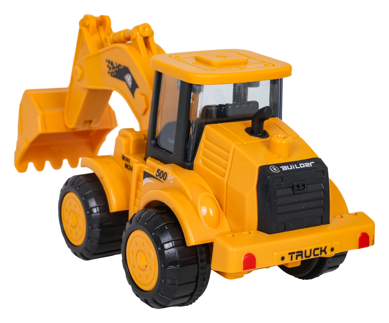 Ten kompletny zestaw 5 w 1 przenosi realistyczny plac budowy do dziecięcego pokoju i na plac zabaw. Pojazdy mają ruchomy wysięgnik, łyżki oraz obracający się bęben betoniarki, dzięki czemu mali budowniczowie spędzą długie godziny na twórczej zabawie. Wysokiej jakości plastik i solidne koła zapewniają długą żywotność i bezpieczne użytkowanie.