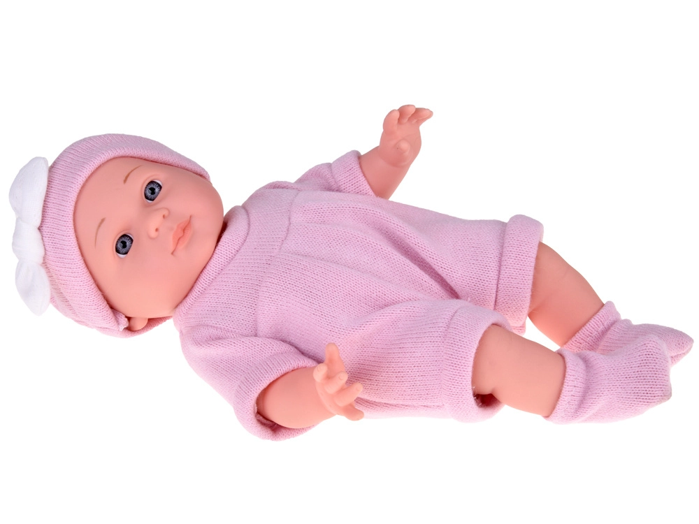 Realistyczne niemowlę w różowym, dzianym ubranku