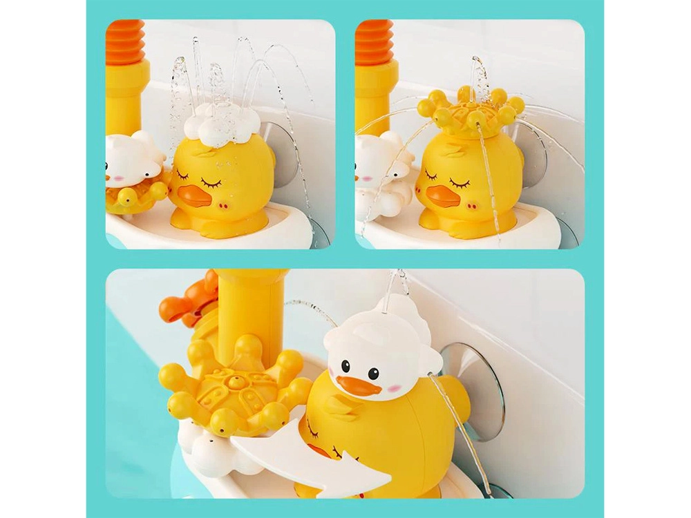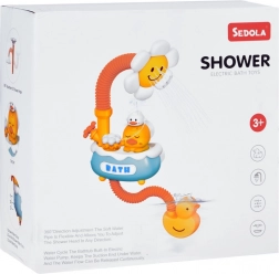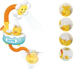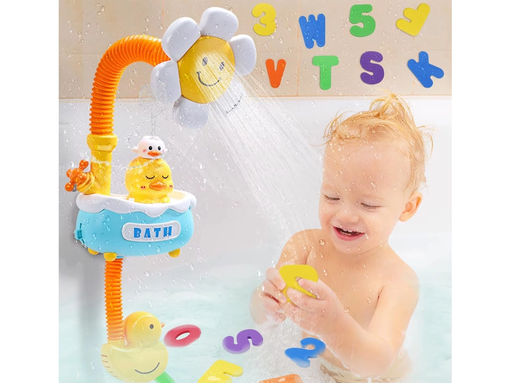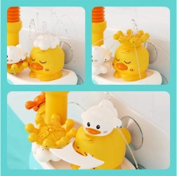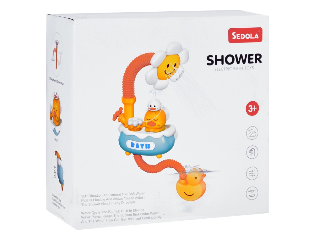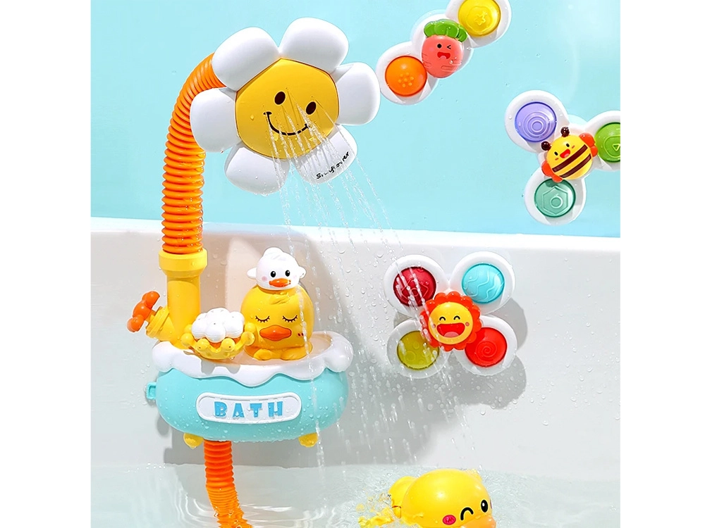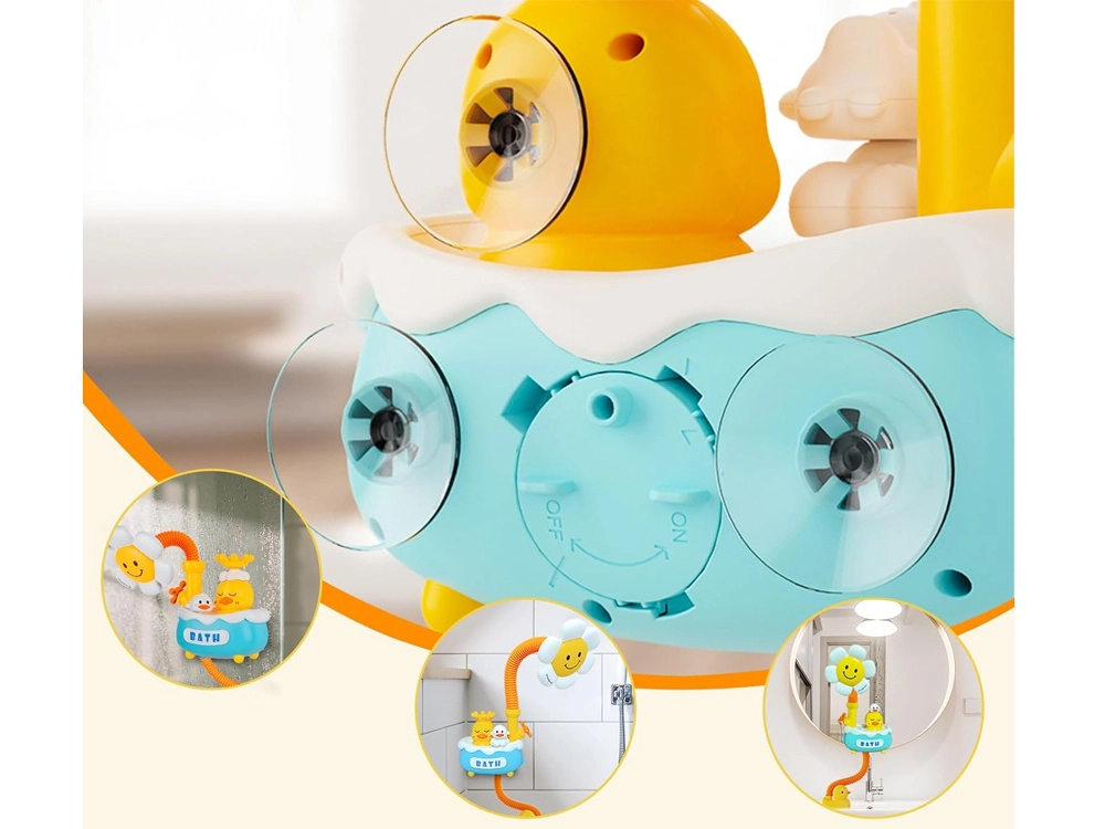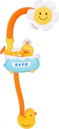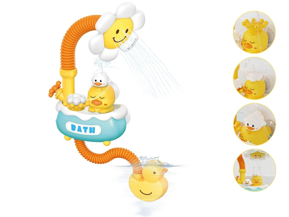Wesoły kwiatowy zestaw prysznicowy dla dzieci wspiera pozytywny stosunek do wody i umila każdą kąpiel. Zanurz pompkę w kształcie kaczuszki w wodzie, włącz i zobacz, jak z uśmiechniętego kwiatu popłynie delikatny wodny prysznic. Zabawka jest idealna dla dzieci od ok. 3 lat i dzięki bezpiecznemu strumieniowi oraz łatwemu montażowi to świetny wybór do każdej łazienki.