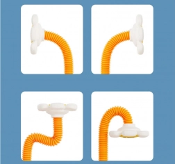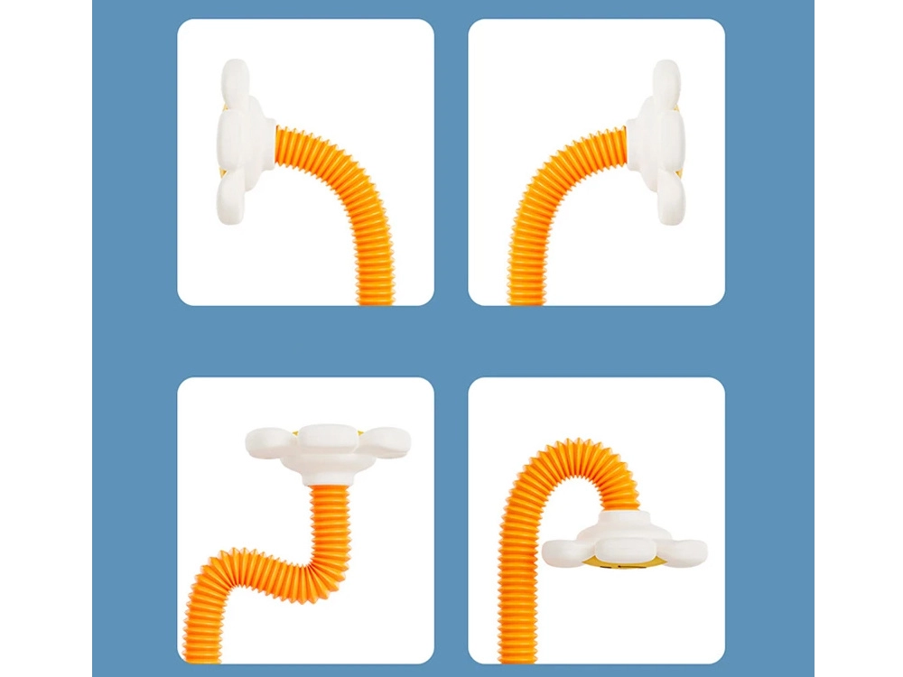 Praktyczny elastyczny wężyk pozwala skierować strumień dokładnie tam, gdzie potrzeba, a wymienne końcówki tworzą różne efekty fontanny – od lekkiej mżawki po radosne tryskanie. Stabilne przyssawki utrzymują zestaw na miejscu zarówno na gładkich płytkach, jak i na krawędzi wanny.