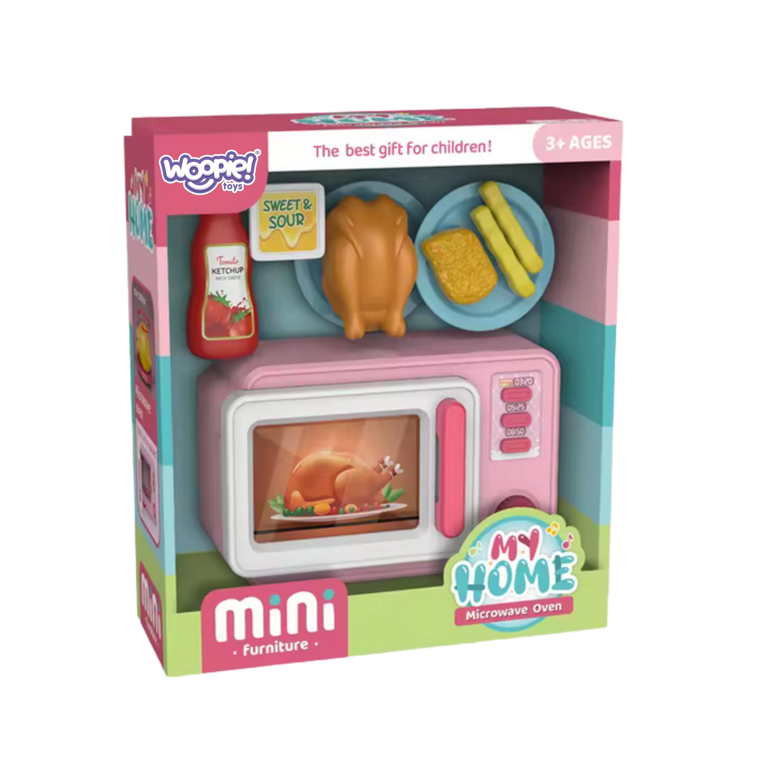 Ta interaktywna mikrofalówka została zaprojektowana tak, aby wiernie naśladować prawdziwe sprzęty domowe – nie brakuje podświetlonego wnętrza, realistycznych dźwięków oraz obrotowego talerza. Dzieci mogą ustawić czas, otworzyć drzwiczki, włożyć kurczaka, frytki lub nugget i obserwować, jak mikrofalówka „pracuje”. Świetny wybór do edukacyjnej zabawy i treningu codziennych czynności.