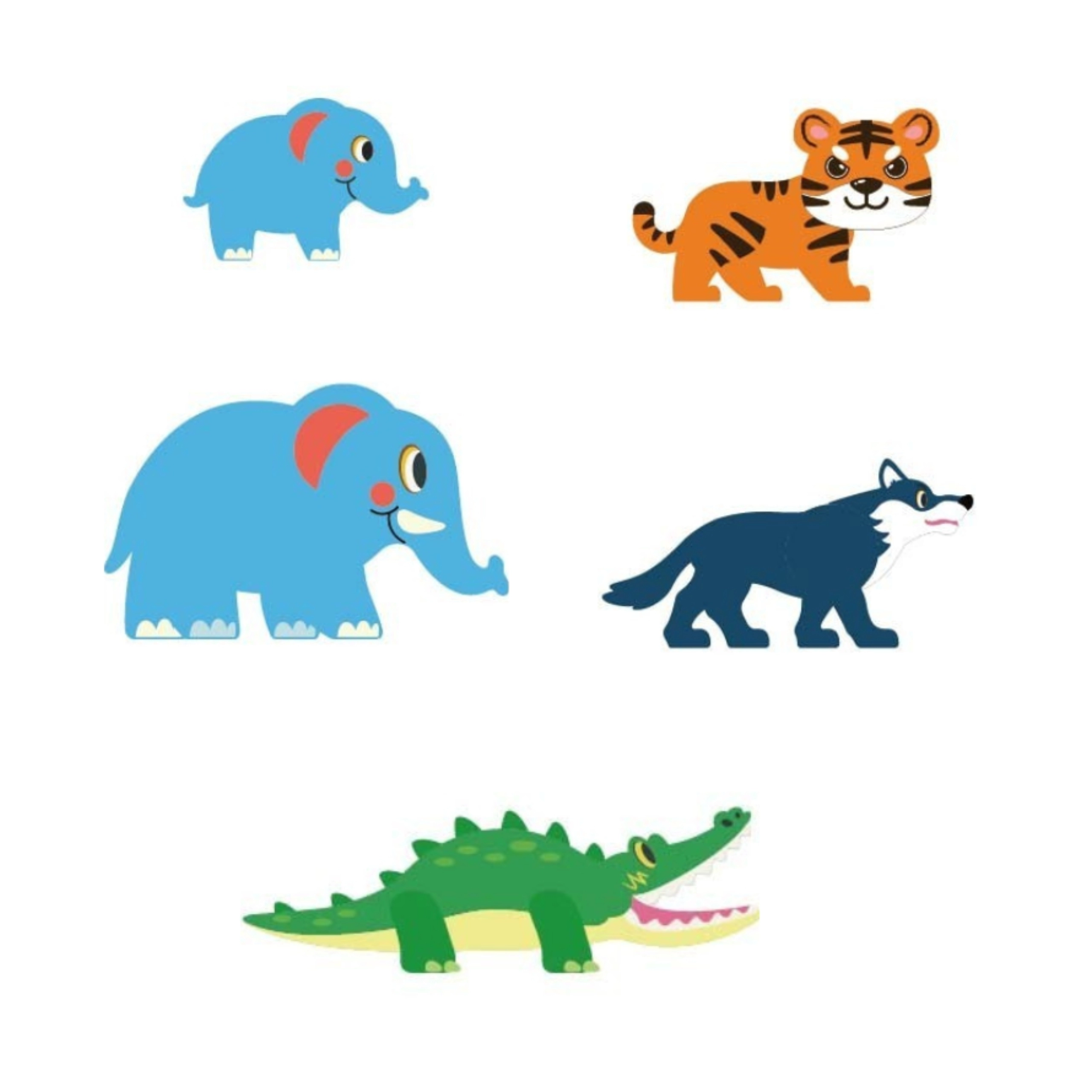 Figurki słonia, tygrysa, krokodyla i wilka wnoszą do zabawy opowieści oraz rozwijają wyobraźnię i umiejętności komunikacyjne.