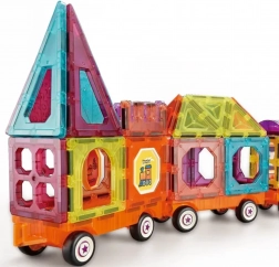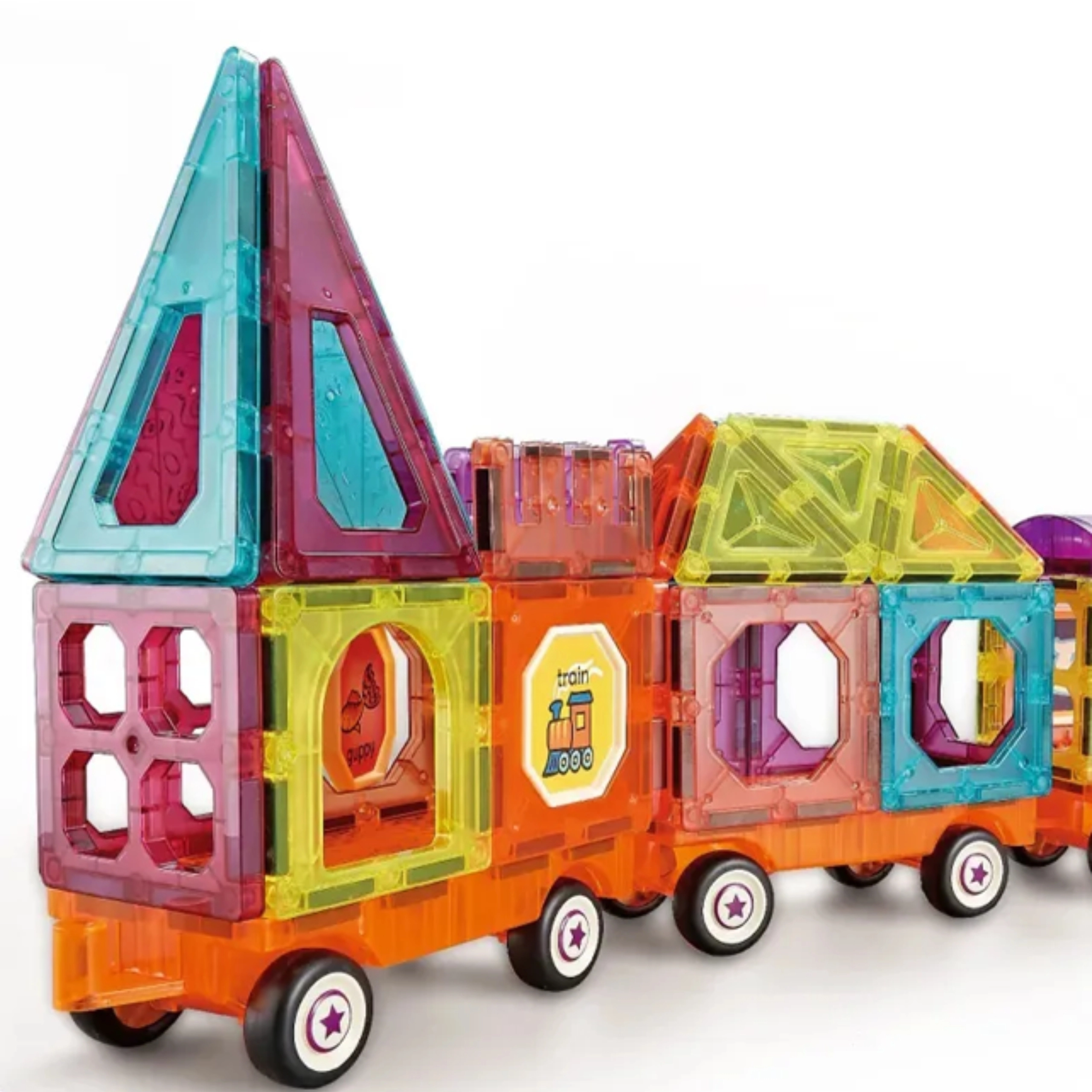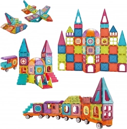 Odkryj kreatywny świat magnetycznego budowania. Kolorowe elementy o różnych kształtach i nadrukach szybko i bezpiecznie się łączą, dzięki czemu dzieci mogą od razu budować lokomotywy, wagoniki i oryginalne pojazdy. Zestaw zachęca do twórczej zabawy i rozwija myślenie konstrukcyjne.