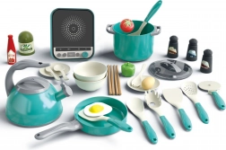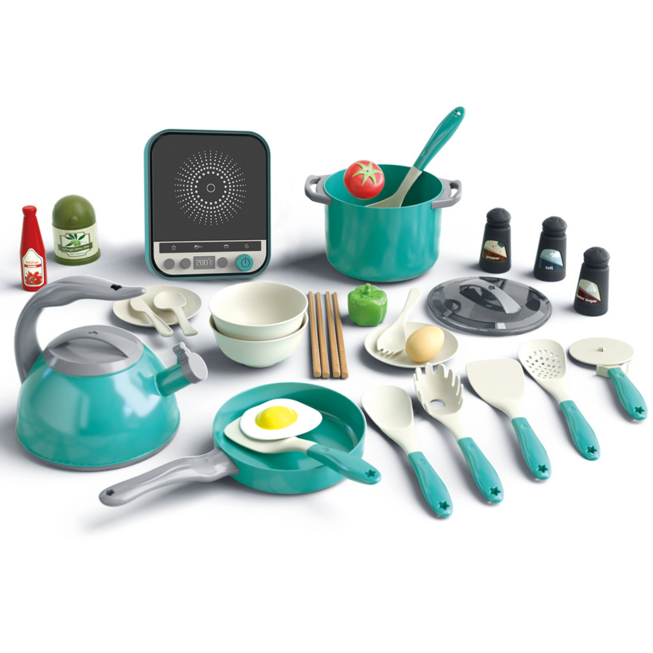 Obszerna zestaw dla małego kucharza marki WOOPIE zapewnia realistyczną zabawę w gotowanie z aż 30 elementami. Dzieci będą się świetnie bawić, naśladując dorosłych, i rozwiną swoją kreatywność, wyobraźnię oraz motorykę małą. W zestawie znajduje się płyta indukcyjna, garnki z pokrywkami, patelnia z sadzonym jajkiem, czajnik, sztućce, warzywa i przyprawy – wszystko do zabawnej i realistycznej zabawy w odgrywanie ról.