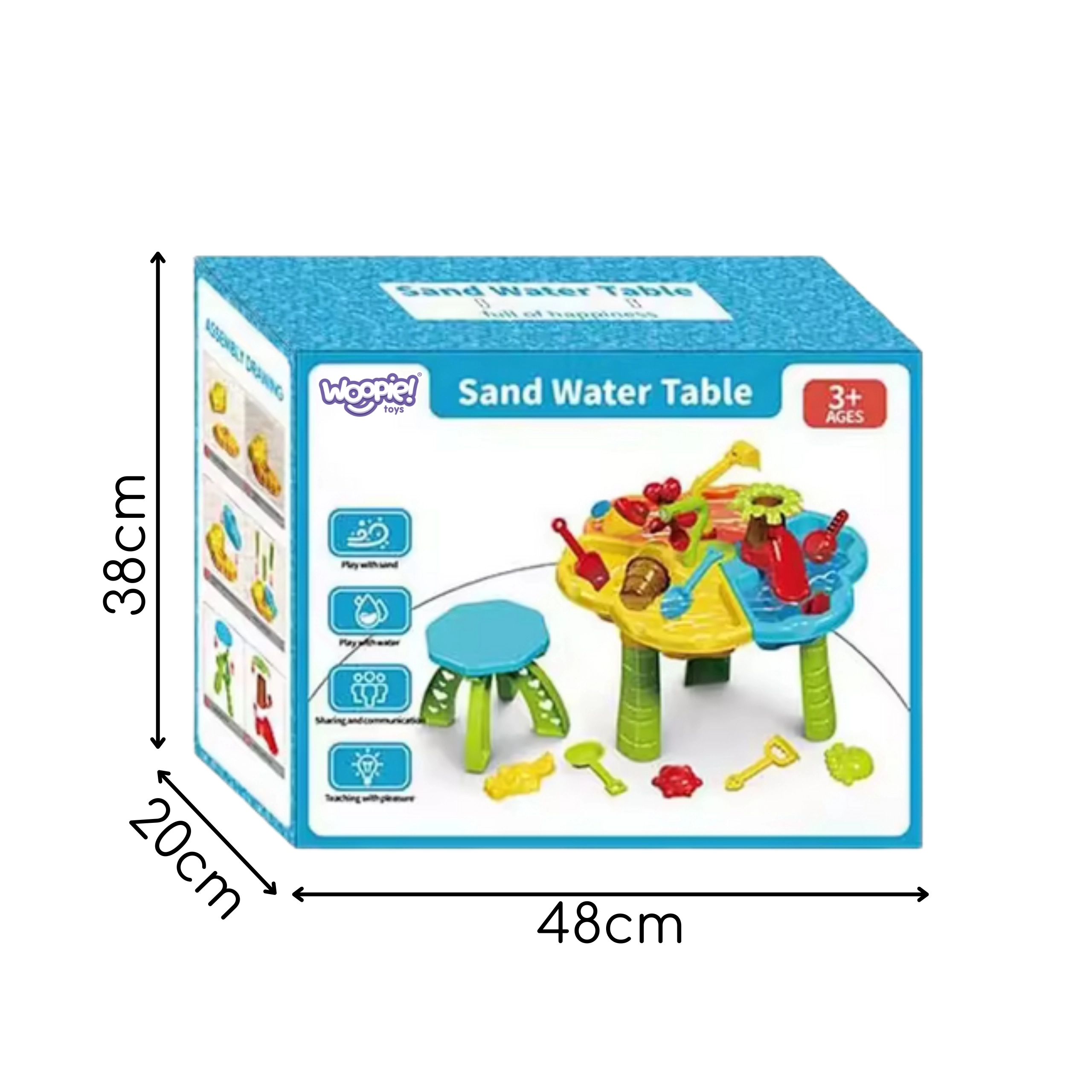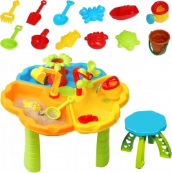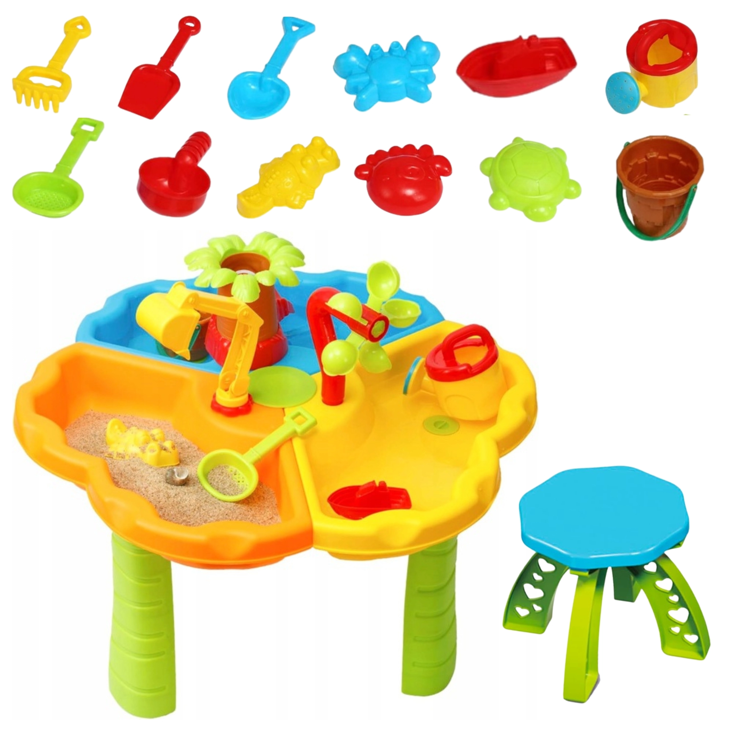Stolik do zabawy 2w1 do wody i piasku idealnie sprawdzi się w ogrodzie, na balkonie, tarasie oraz w pokoju dziecięcym. Trzyczęściowe wanienki pozwalają równocześnie eksperymentować z wodą, piaskiem i dodatkami, dzięki czemu dzieci mogą budować, przelewać, przesiewać i odkrywać różne faktury. Ergonomiczne krzesełko zapewnia wygodę i stabilność podczas zabawy.