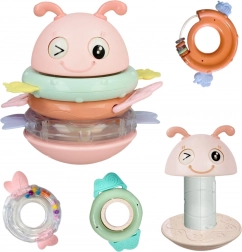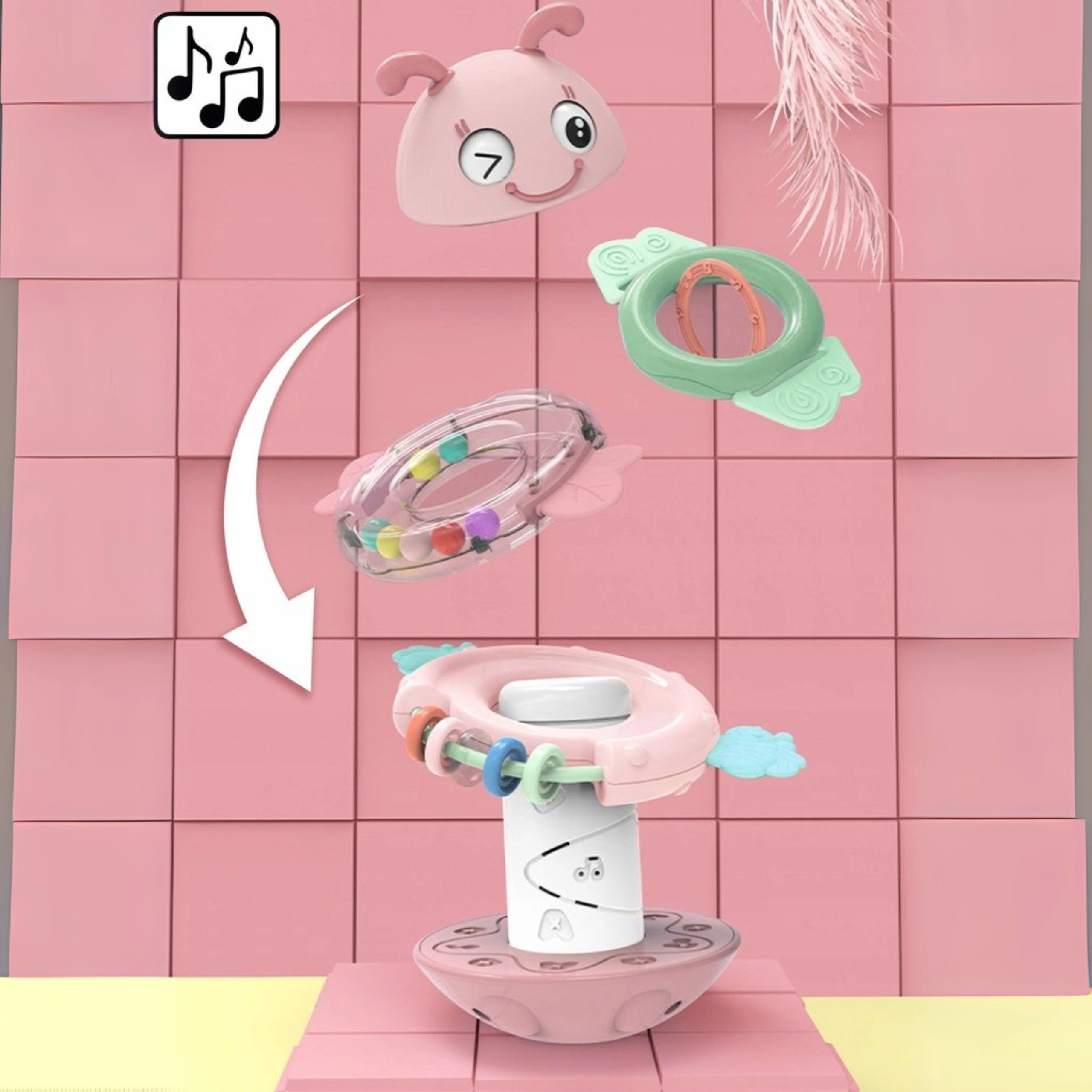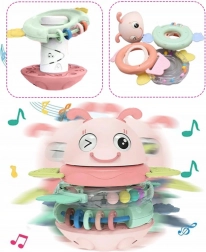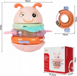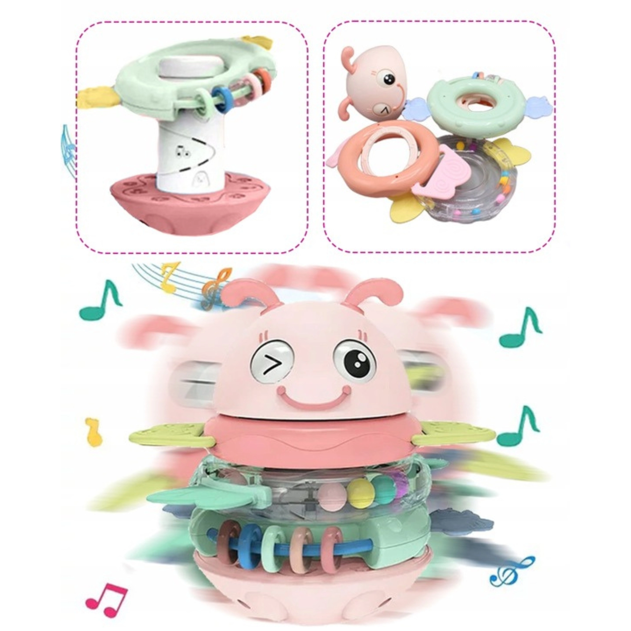 Szukasz zabawki dla maluszka, która zaciekawi, ukoi dziąsła i jednocześnie wesprze rozwój? Ta różowa pszczółka WOOPIE to wielofunkcyjna zabawka sensoryczna odpowiednia już od pierwszych miesięcy. Kółeczka można używać oddzielnie jako gryzaki i grzechotki lub założyć je na bolec – zabawka wtedy odtworzy piosenkę albo wyda zabawny dźwięk. Stabilna, zaokrąglona podstawa delikatnie się kołysze i motywuje dziecko do ponownego odkrywania.