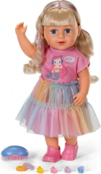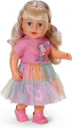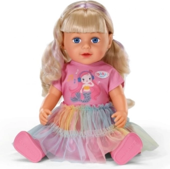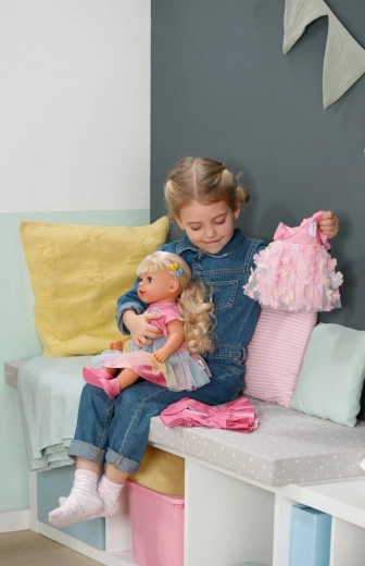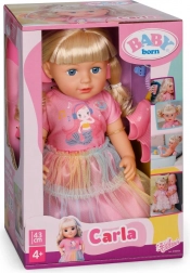 Lalka BABY born Carla to idealna towarzyszka do kreatywnej zabawy i eksperymentów z fryzurami. Długie nylonowe włosy łatwo się czeszą i stylizują, a dzięki dołączonej szczotce, gumkom i spinkom stworzysz niezliczone fryzury. Realistyczny wygląd, ruchome kończyny oraz możliwość samodzielnego stania pobudzają wyobraźnię i odgrywanie ról.