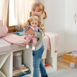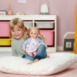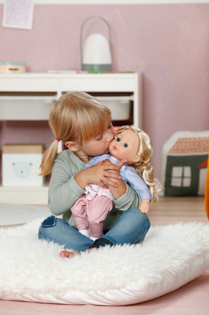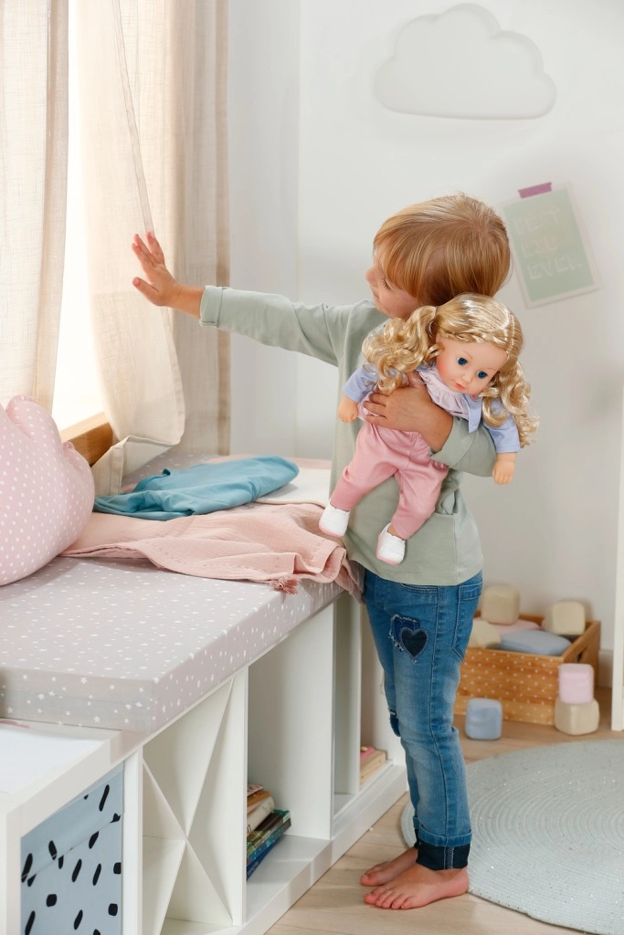 W opakowaniu znajduje się kompletny zestaw ubranek: subtelna sukienka z lekką kurteczką, wygodne legginsy i buty. Dzięki ruchomym kończynom lalka łatwo siada i daje się ubierać. Zabawa lalką rozwija małą motorykę, empatię i wyobraźnię – idealny wybór jako pierwsza lalka dla najmłodszych.