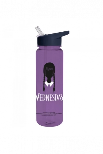 Stylowa plastikowa butelka z motywem WEDNESDAY o pojemności 700 ml jest idealna do codziennego nawadniania. Oferuje praktyczne ustnik oraz zakręcane zamknięcie dla wygodnego i bezpiecznego użytkowania. Uwaga: nie nadaje się do zmywarki.
