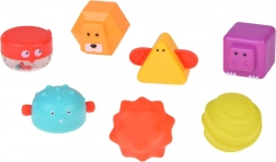 Kolorowe gumki umożliwiają łatwe wkładanie i wyjmowanie elementów, trenują chwyt, precyzję i siłę palców. W zestawie znajduje się 7 zróżnicowanych kształtów oraz małe lusterko do sensorycznego odkrywania.