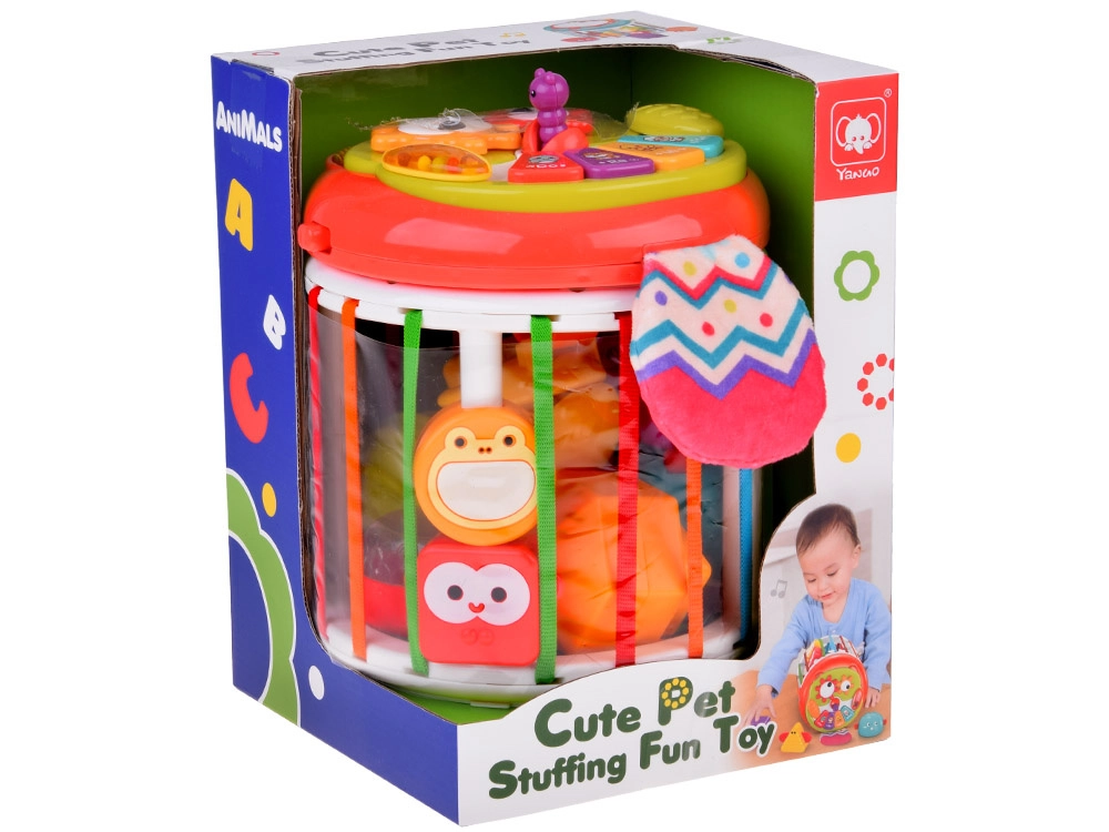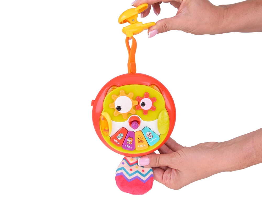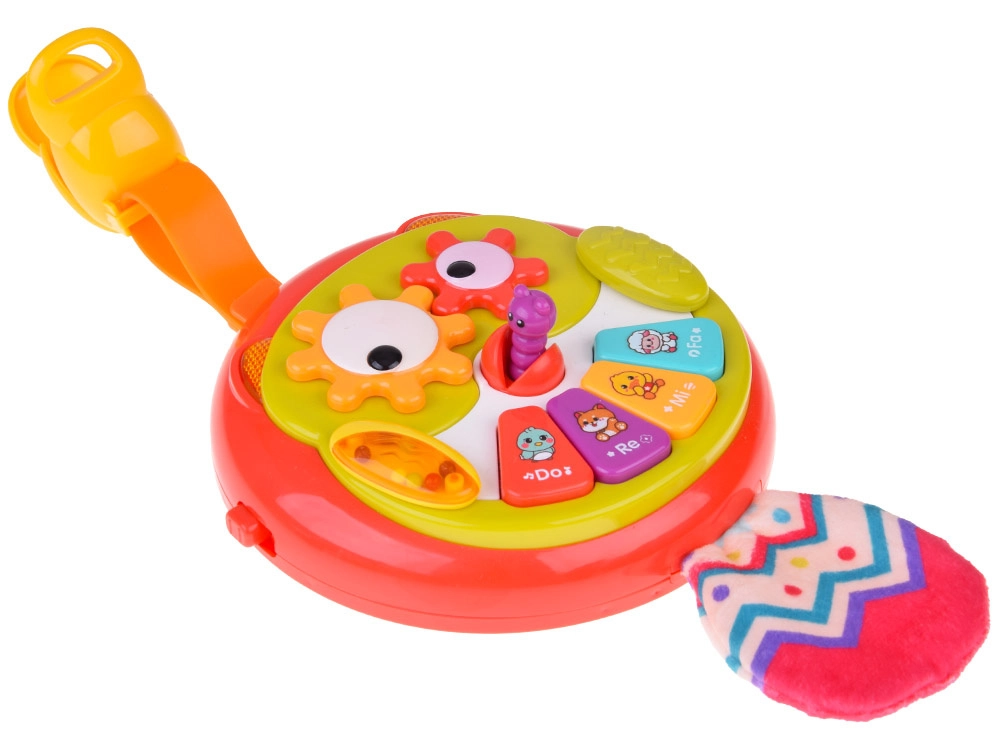 Cztery przyciski ze zwierzątkami odtwarzają dźwięki do–re–mi–fa, autentyczne odgłosy zwierząt oraz krótkie instrumentalne melodie i piosenki. Dzieci rozwijają słuch i poczucie rytmu poprzez naturalną zabawę.