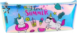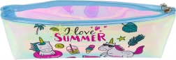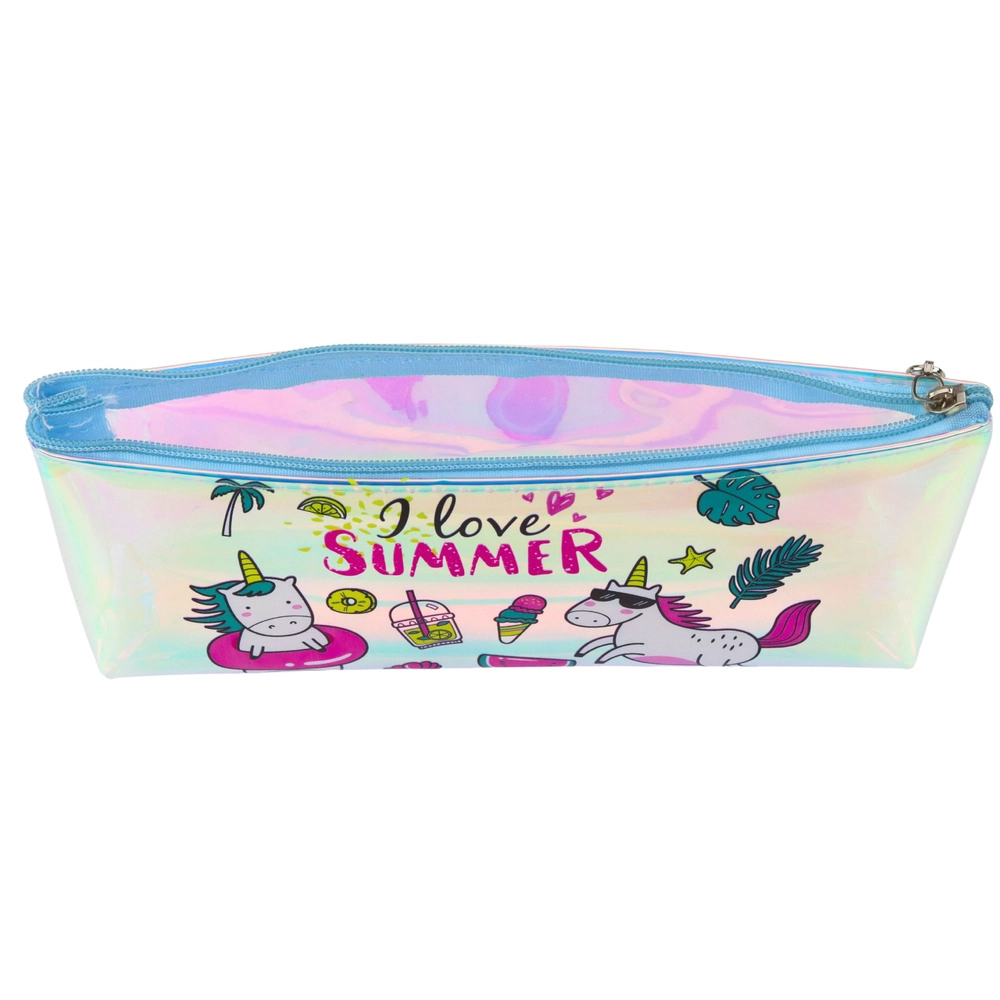 Irydescencyjna powierzchnia tęczowo mieni się w zależności od padania światła. Przednia strona z napisem „I love SUMMER”, jednorożcem i zabawnymi ikonami rozświetli każdy szkolny dzień.
