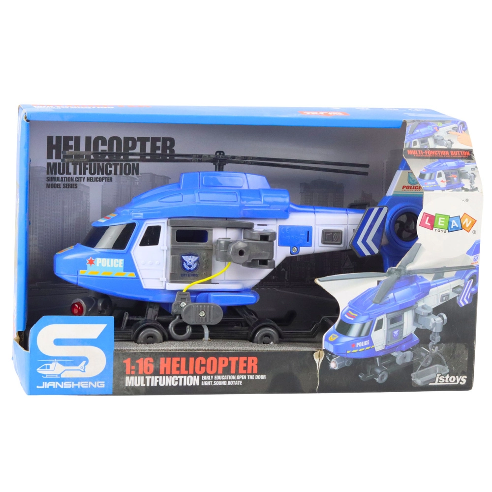 Ten szczegółowo wykonany policyjny helikopter w niebieskim kolorze zapewnia dzieciom mnóstwo zabawy i realistycznych funkcji. Po naciśnięciu przycisków aktywują się efekty świetlne i dźwiękowe, obracające się główny i ogonowy wirnik potęgują autentyczne wrażenia, a kółka umożliwiają ruch po podłodze.