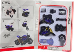 Motocykl do samodzielnego złożenia 1:14, model metalowo‑plastikowy, czarno‑niebieski