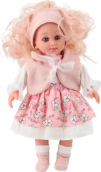 Urocza lalka SWEET ANGEL o wysokości 36 cm zachwyca delikatnymi rysami twarzy, długimi blond włosami i eleganckim strojem. Ma różową, kwiecistą sukienkę z białym kołnierzykiem, różową kamizelkę bez rękawów, pasującą opaskę oraz skarpetki. Idealna do zabawy w odgrywanie ról, rozwijania kreatywności i opiekuńczości.