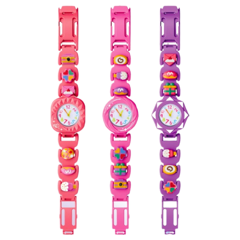 Ten kreatywny zestaw pozwala dzieciom zaprojektować i złożyć własne zegarki oraz bransoletki według wyobraźni. W środku znajdą różne kolorowe modułowe paski, wymienne oprawy tarczy oraz bogaty zestaw dekoracyjnych koralików. Dzięki łatwemu łączeniu można tworzyć niezliczone oryginalne kombinacje na każdą okazję.