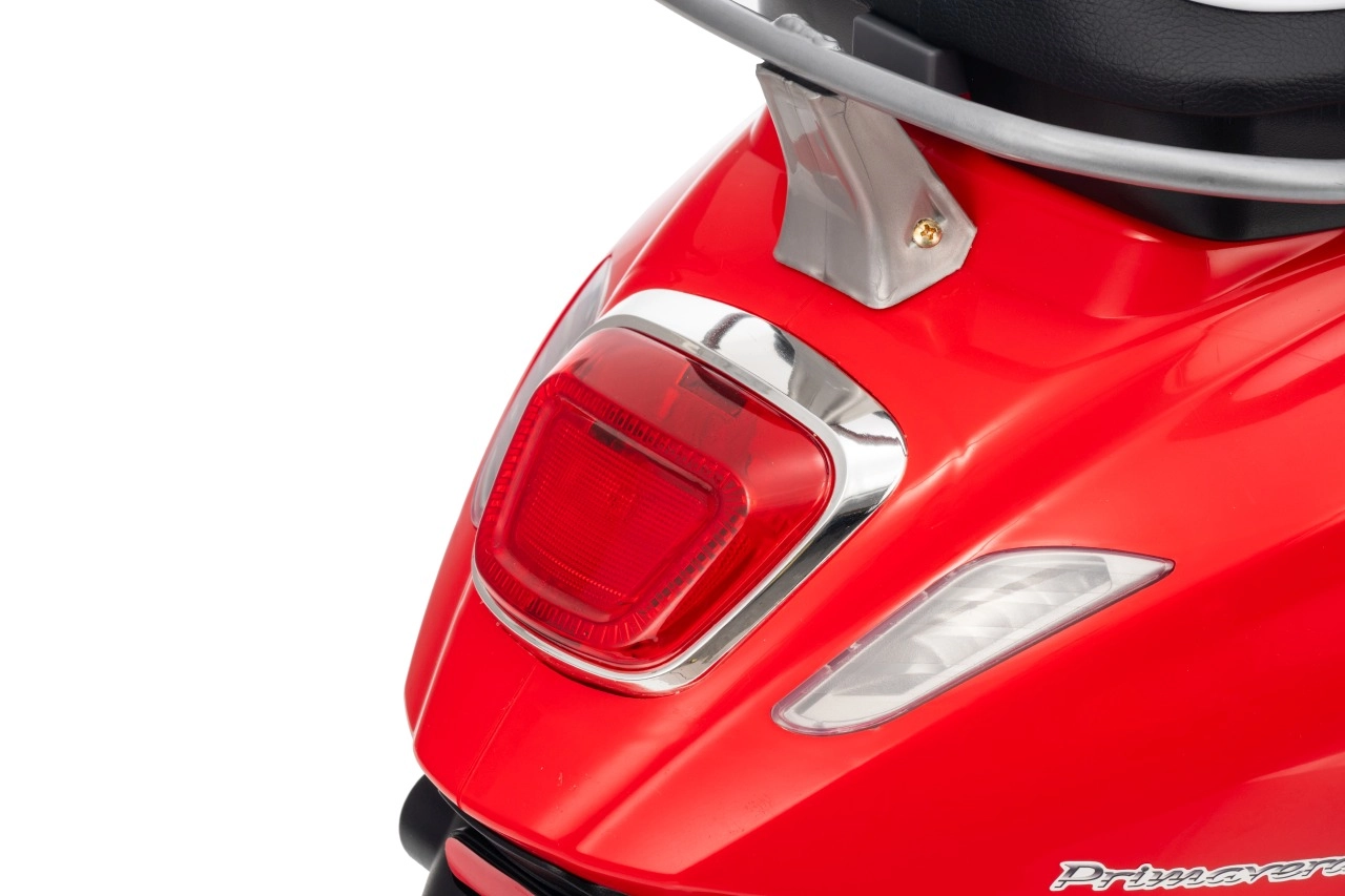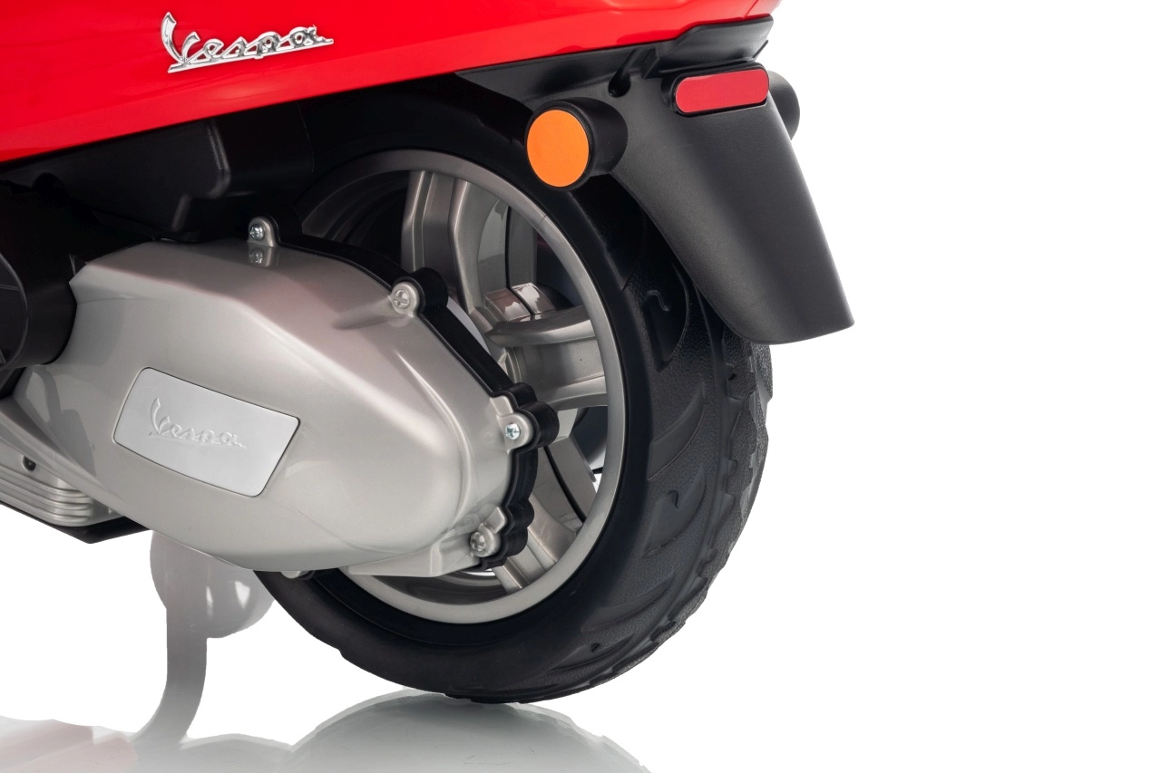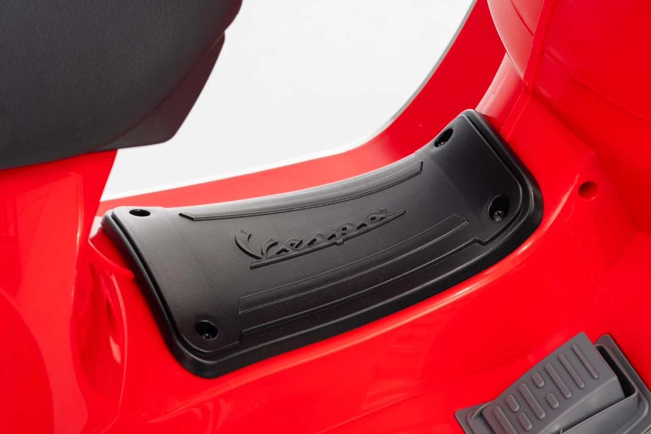 Dziecięcy skuter VESPA ROMA w czerwonym kolorze zapewnia autentyczne wrażenia z jazdy w bezpiecznym wydaniu dla najmłodszych. Dzięki płynnemu ruszaniu, jeździe do przodu i do tyłu oraz wysokiej jakości kołom EVA jazda jest komfortowa i cicha. Praktyczne światła LED zwiększają widoczność i nadają pojazdowi realistyczny wygląd.