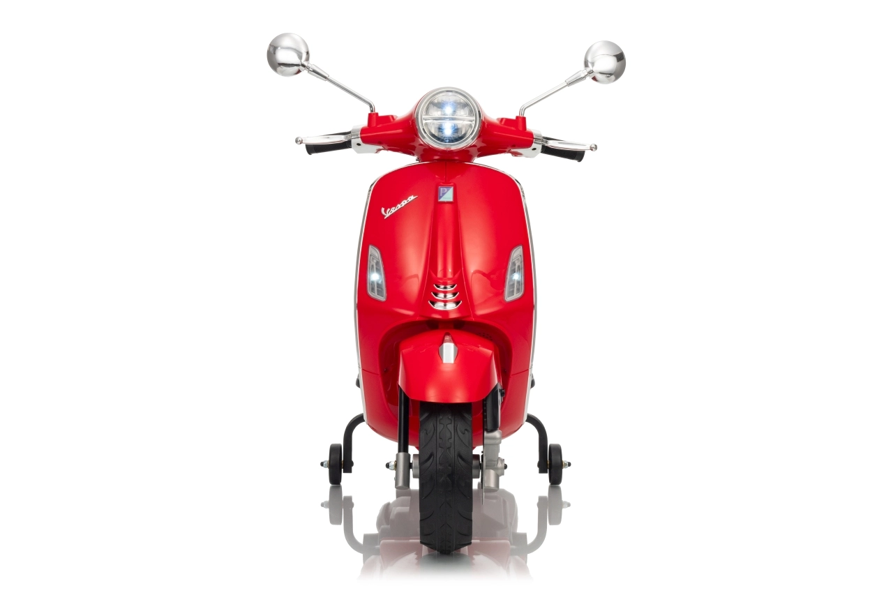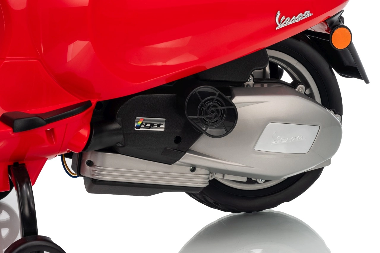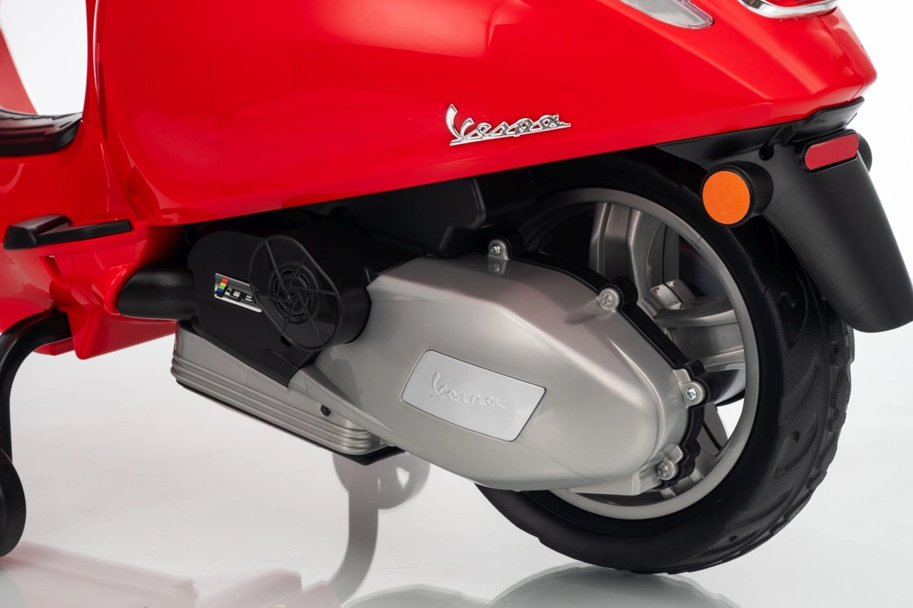 Dziecięcy skuter VESPA ROMA w czerwonym kolorze zapewnia autentyczne wrażenia z jazdy w bezpiecznym wydaniu dla najmłodszych. Dzięki płynnemu ruszaniu, jeździe do przodu i do tyłu oraz wysokiej jakości kołom EVA jazda jest komfortowa i cicha. Praktyczne światła LED zwiększają widoczność i nadają pojazdowi realistyczny wygląd.