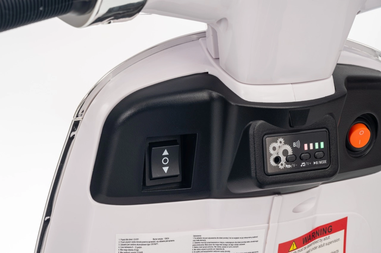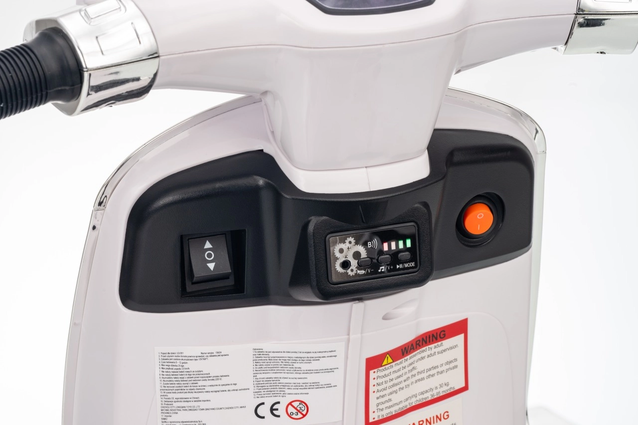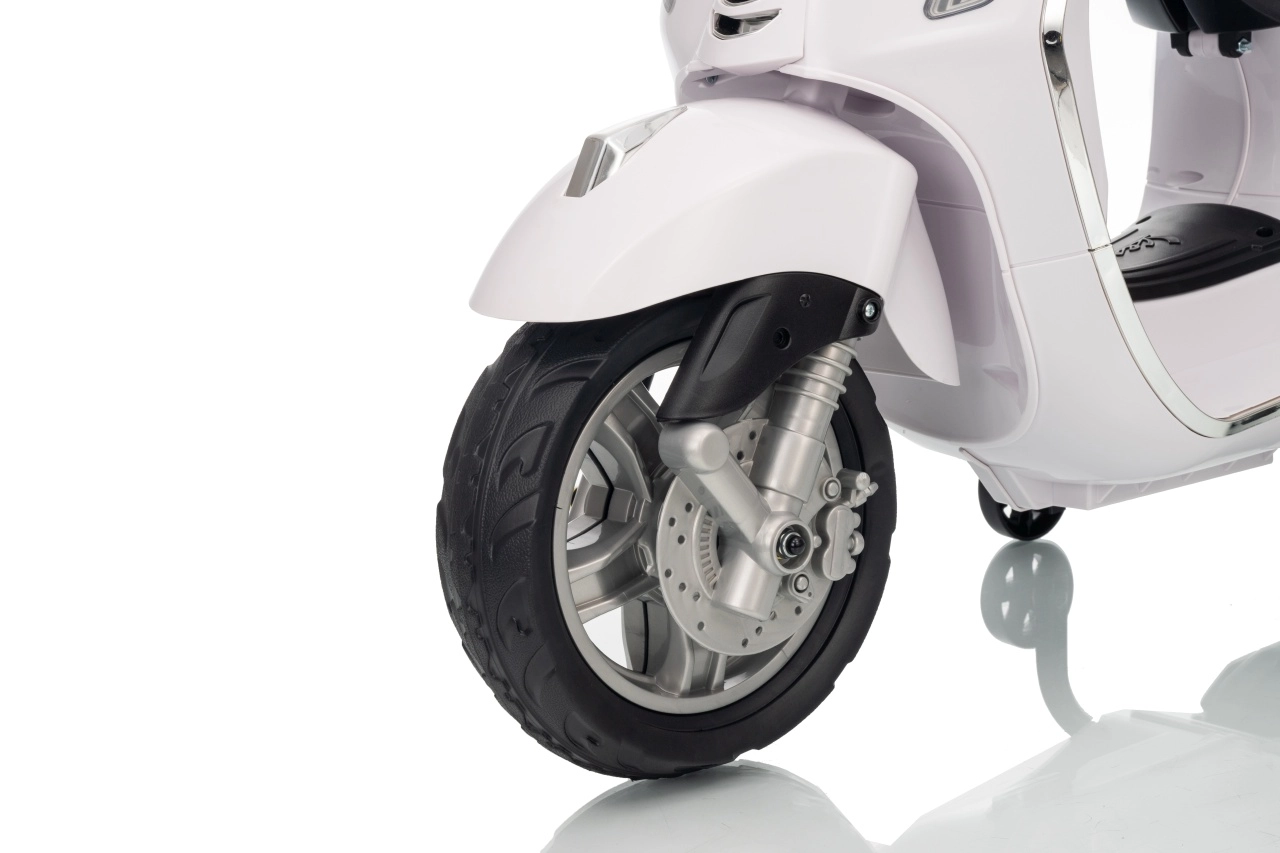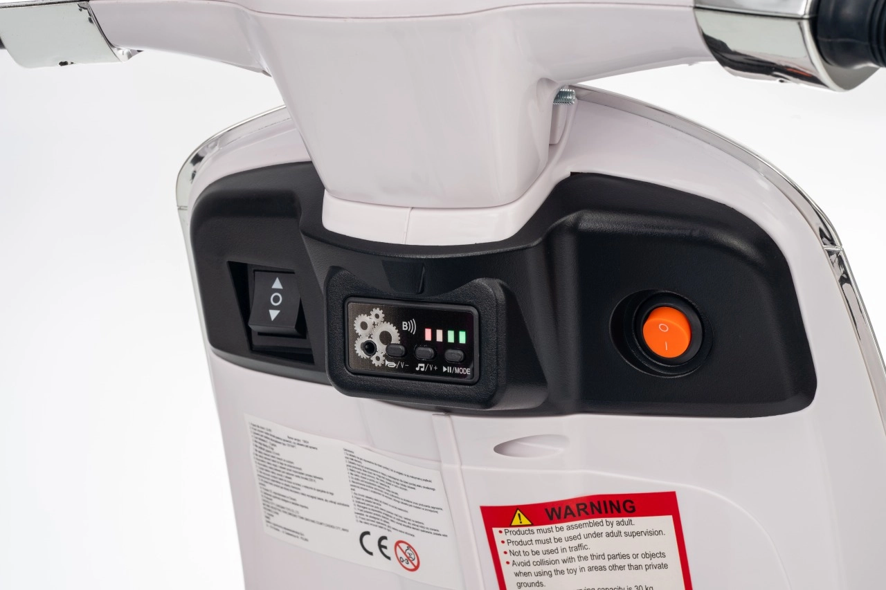 Podaruj dzieciom ich pierwszą przejażdżkę na kultowym skuterze inspirowanym VESPA. Model ROMA łączy bezpieczeństwo, praktyczność i ponadczasowy wygląd. Dwa wydajne silniki 2×35 W w połączeniu z akumulatorem 12 V 7 Ah zapewniają płynną jazdę, a płynny start (Soft Start) pomaga zapobiegać szarpnięciom przy ruszaniu. O stabilność dbają szerokie koła EVA, które są ciche i trwałe.