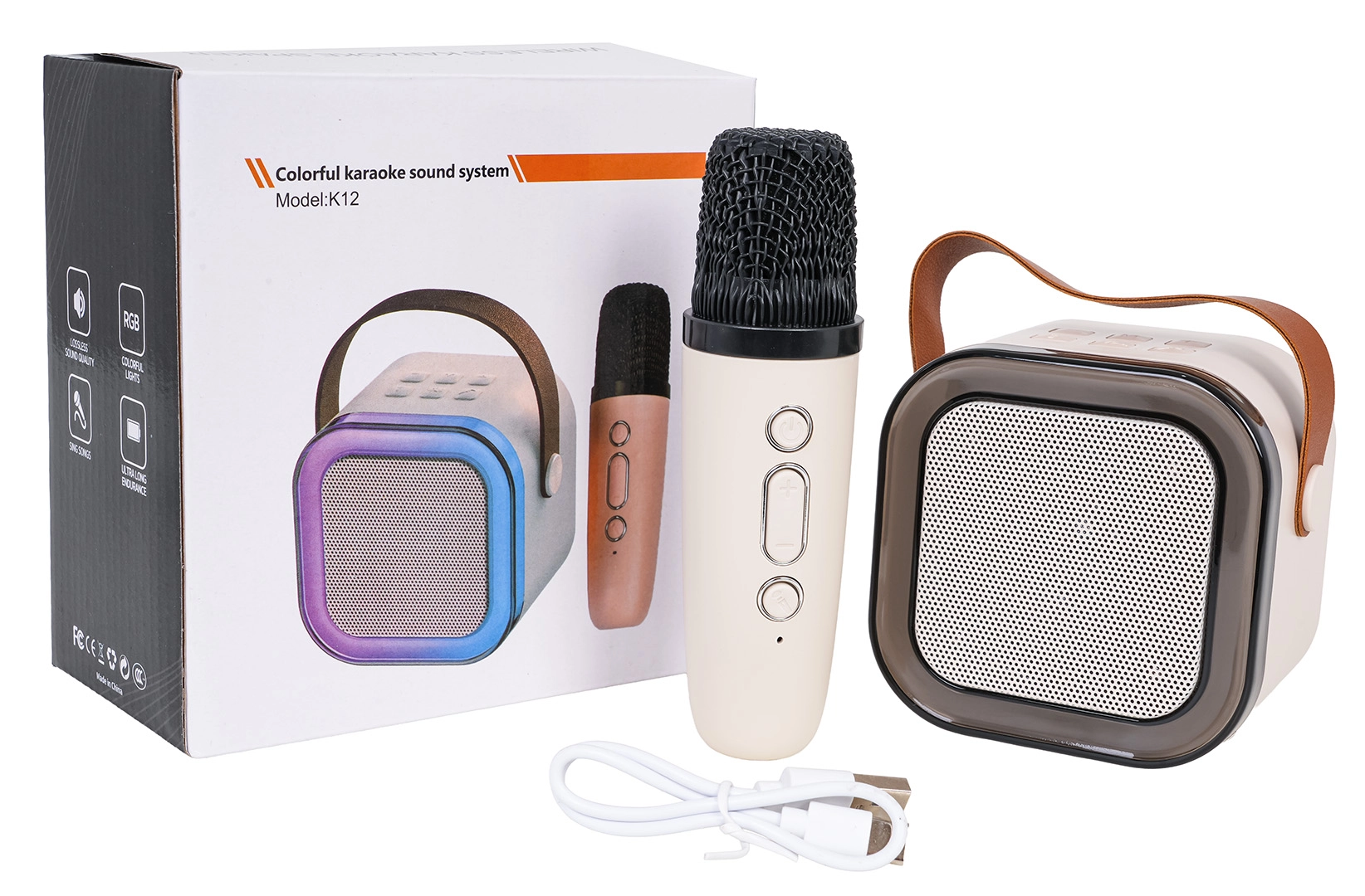 Kompaktowy zestaw karaoke dla dzieci od 3 lat i dorosłych łączy bezprzewodowy mikrofon oraz wydajny mini głośnik z czystym i głośnym dźwiękiem, podświetleniem RGB i stabilnym Bluetooth 5.0. Dzięki redukcji szumów DSP, obsłudze MP3/WMA/WAV oraz wejściom w tym karta TF i USB‑C idealnie nadaje się do śpiewu, ogłoszeń i zabawy w podróży.
