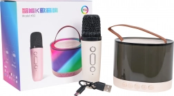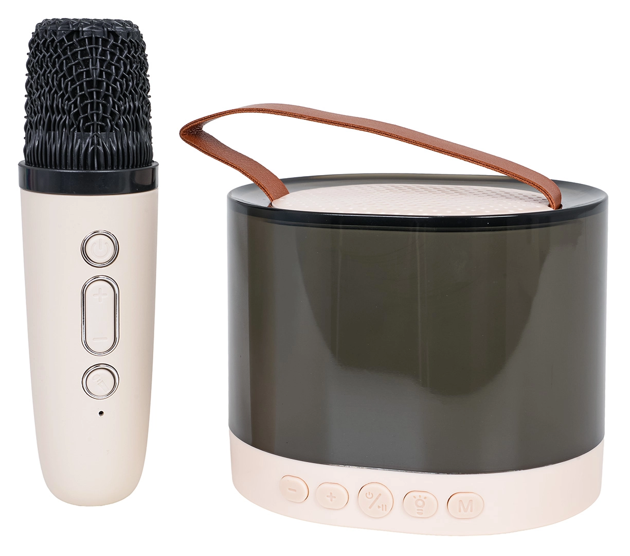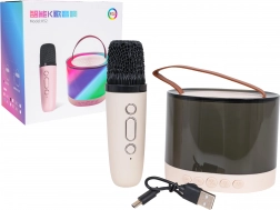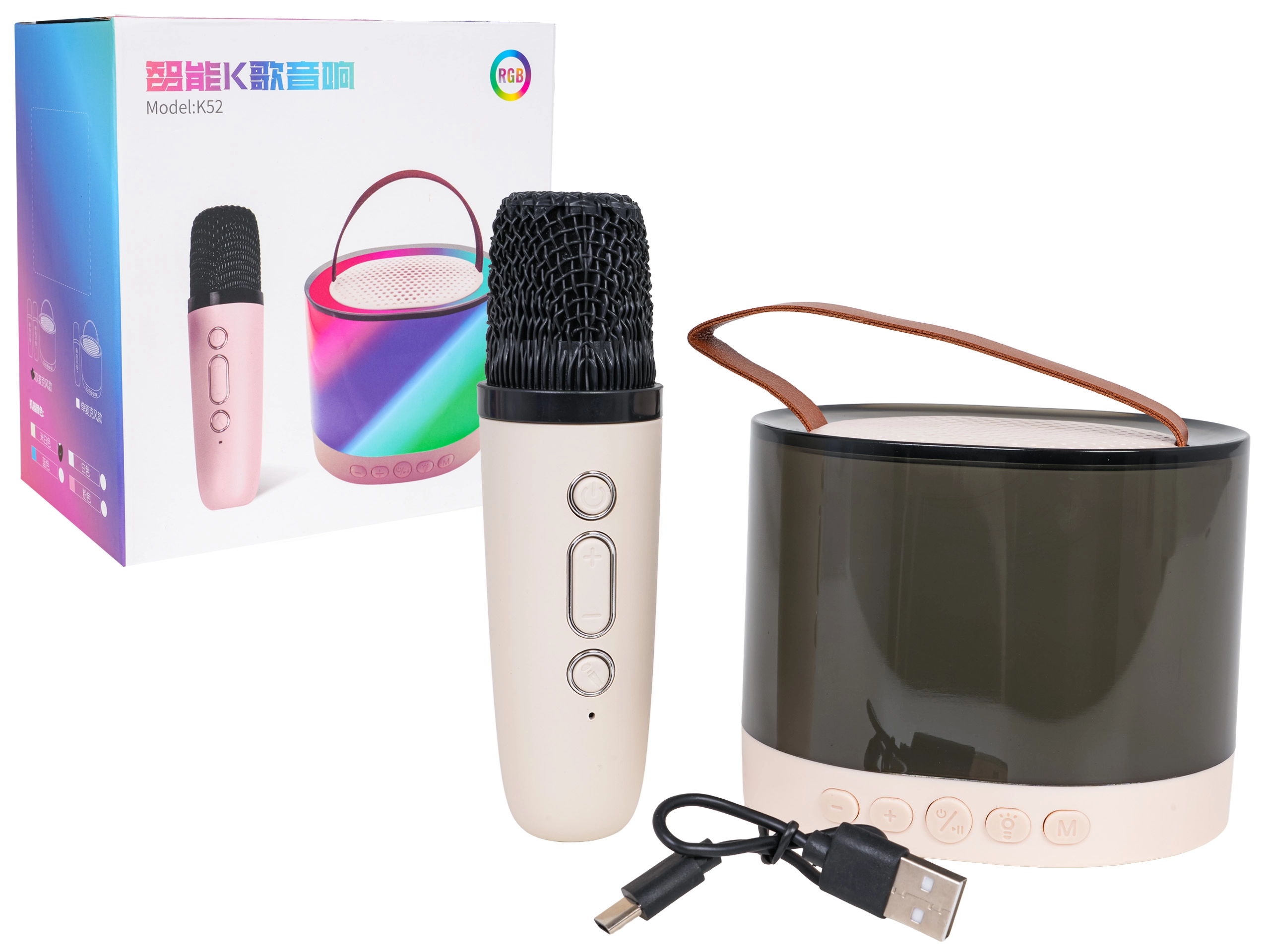 Ten przenośny zestaw karaoke łączy wysokiej jakości bezprzewodowy mikrofon i stylowy głośnik z przezroczystą obudową oraz skórzanym uchem do łatwego przenoszenia. Zaawansowane dekodowanie MP3 i redukcja szumów DSP zapewniają wyraziste basy, czyste wysokie tony i mocny, pełny dźwięk. Podświetlenie RGB LED oferuje 5 efektów, które synchronizują się z muzyką – krótkim naciśnięciem zmieniasz tryby, przytrzymując 2 s wyłączasz światła.